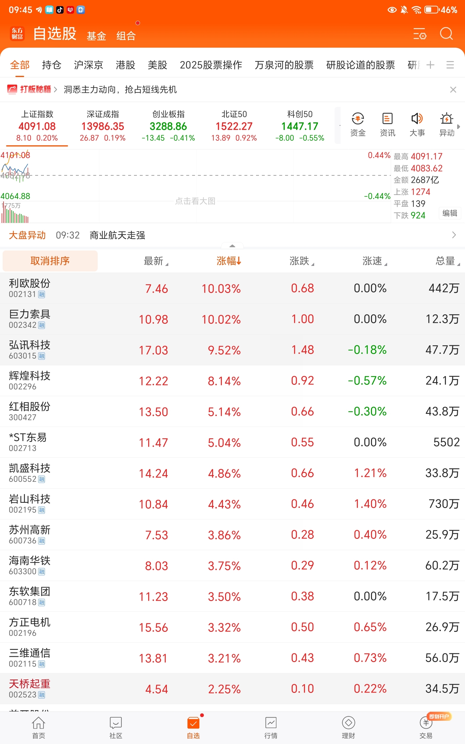 自选股里羡慕妒忌恨啊!东方智造只有无奈无语。。。