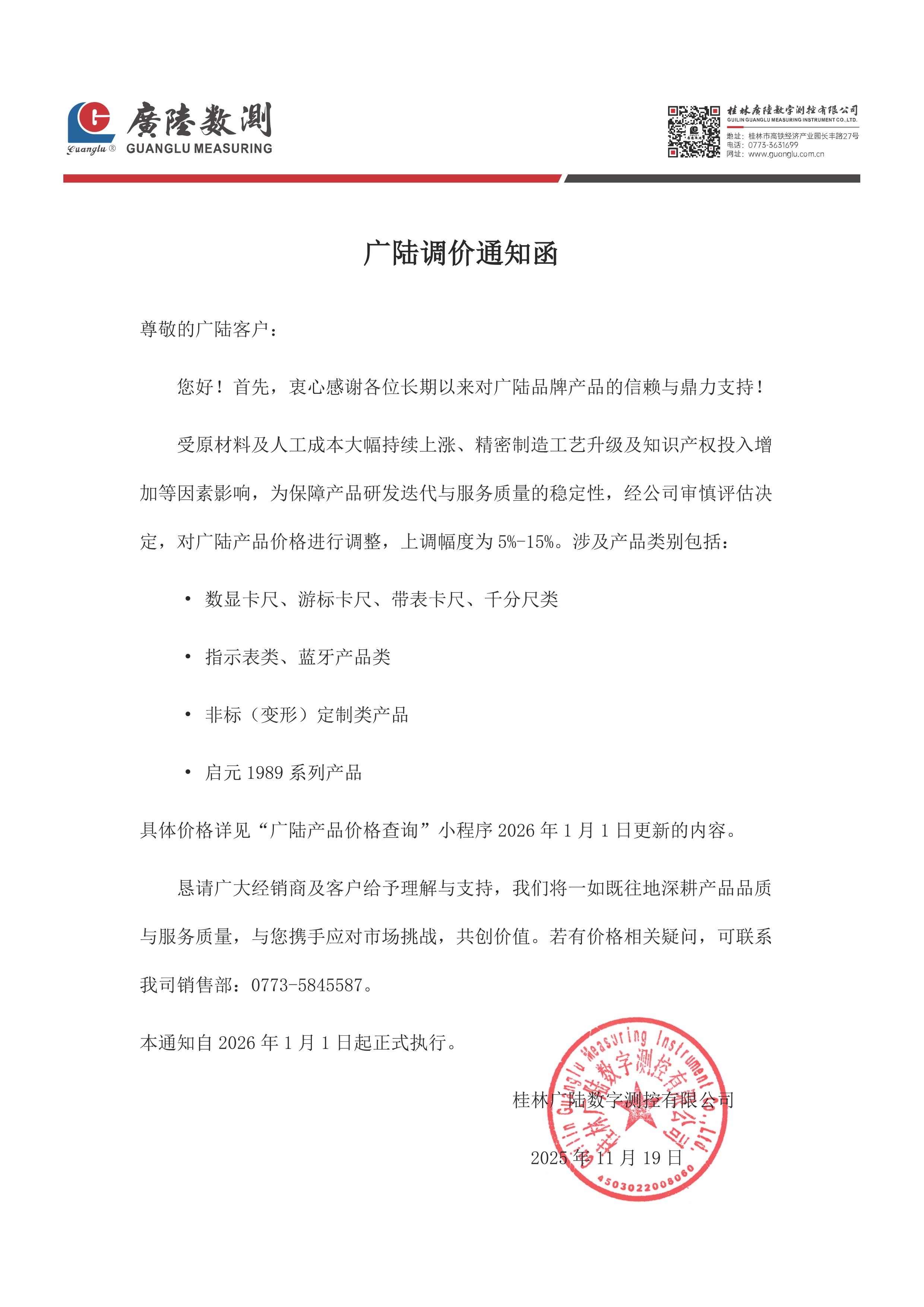 涨价通知,对于26年营收是好事。