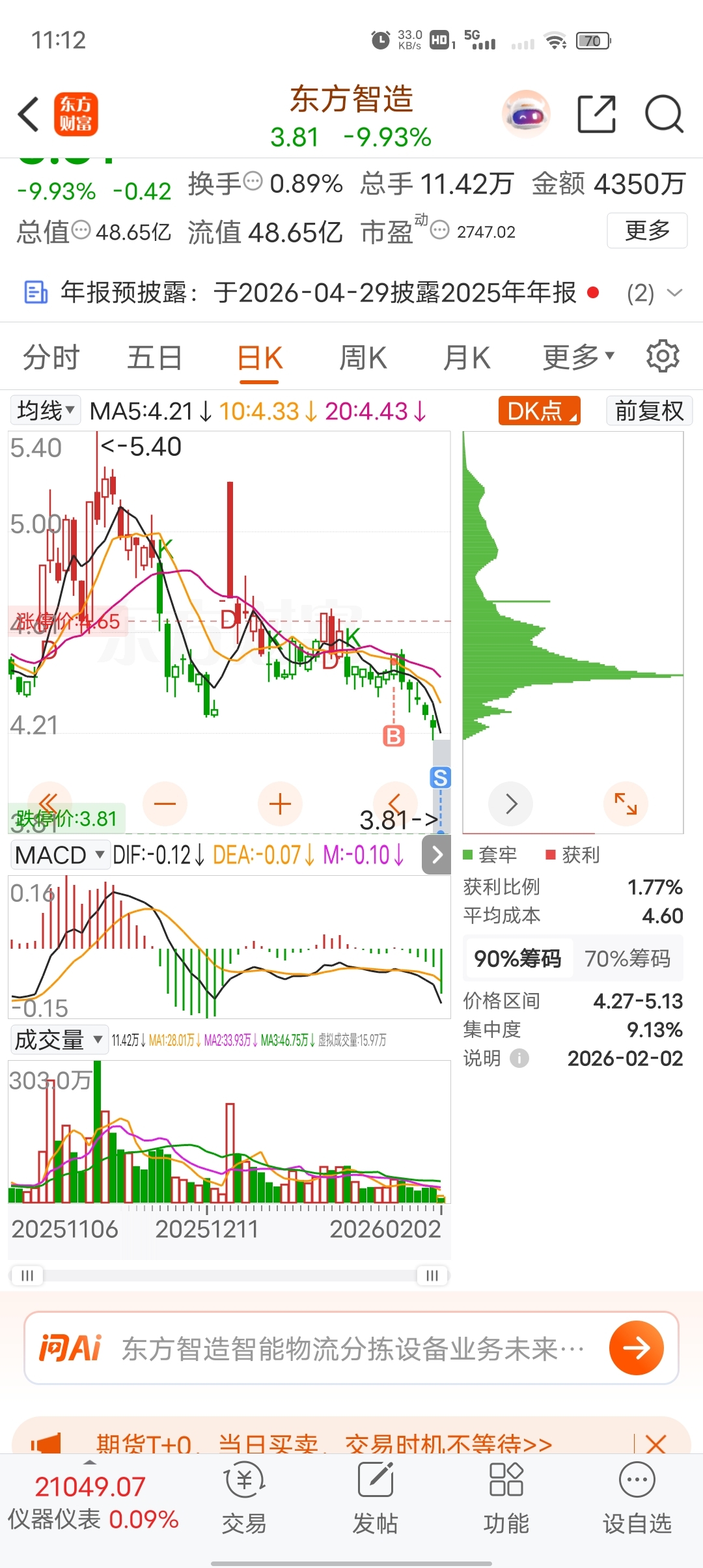 $东方智造(SZ002175)$ 这货完全是收拾我来的