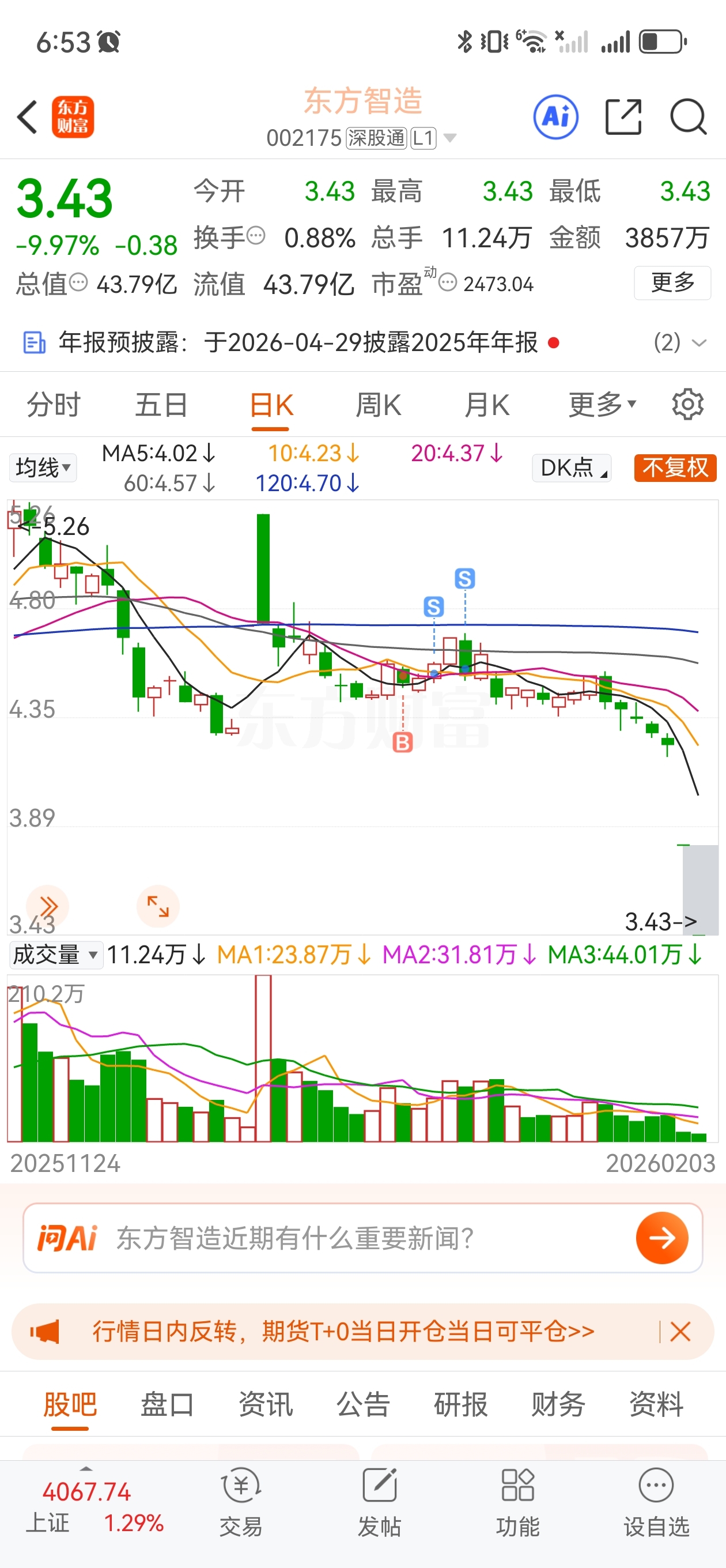 $东方智造(SZ002175)$ 明天是不是可以进来了?