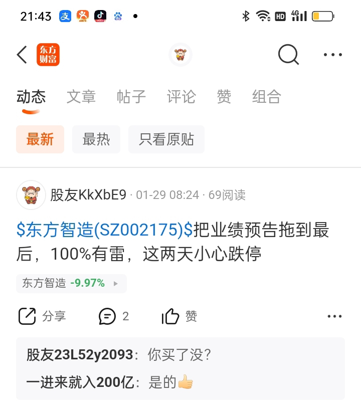 $东方智造(SZ002175)$ 这是业绩预告公布前我发的贴,明确告诉大家有雷,没有人愿意听,没办法