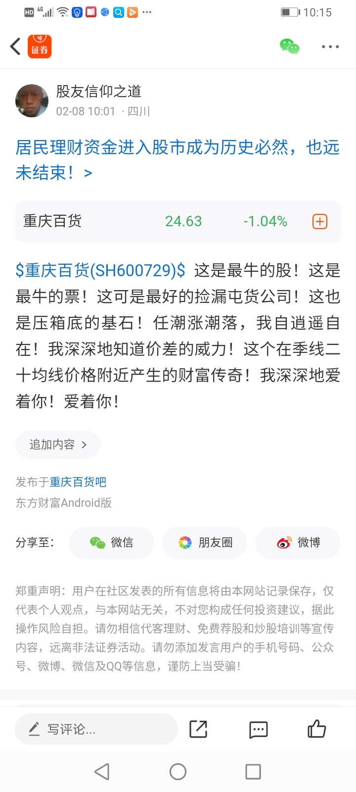 温馨提示: 1.根据《证券法》规定,禁止编造、传播虚假信息或者误导性信息,扰乱证券市场;2.用户在本社区发表的所有资料、言论等仅代表个人观点,与本网站立场无关,不对您构成任何投资建议。用户应基于自己的独立判断,自行决定证券投资并承担相应风险。《东方财富社区管理规定》
