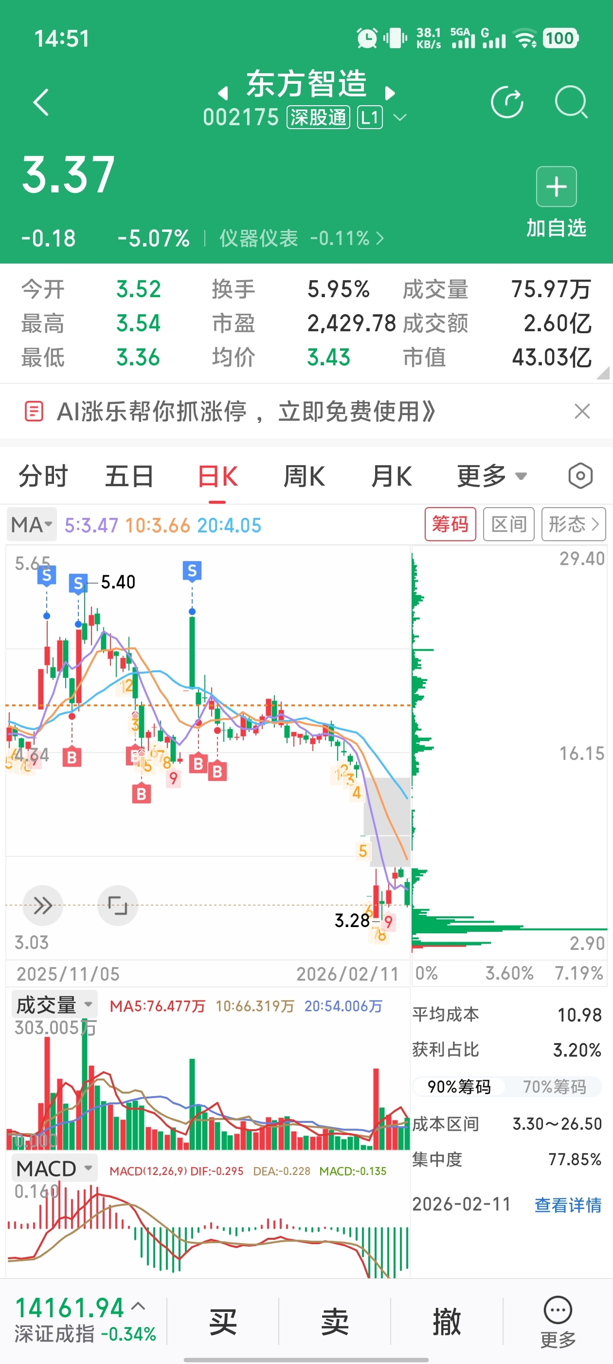 $东方智造(SZ002175)$ 没招了,两成仓在里边,要么退市,回本