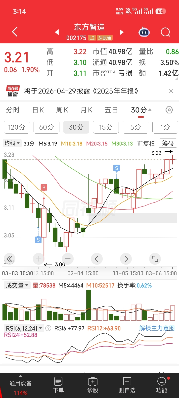 $东方智造(SZ002175)$ 兄弟们我都卖飞了我只能唱空了