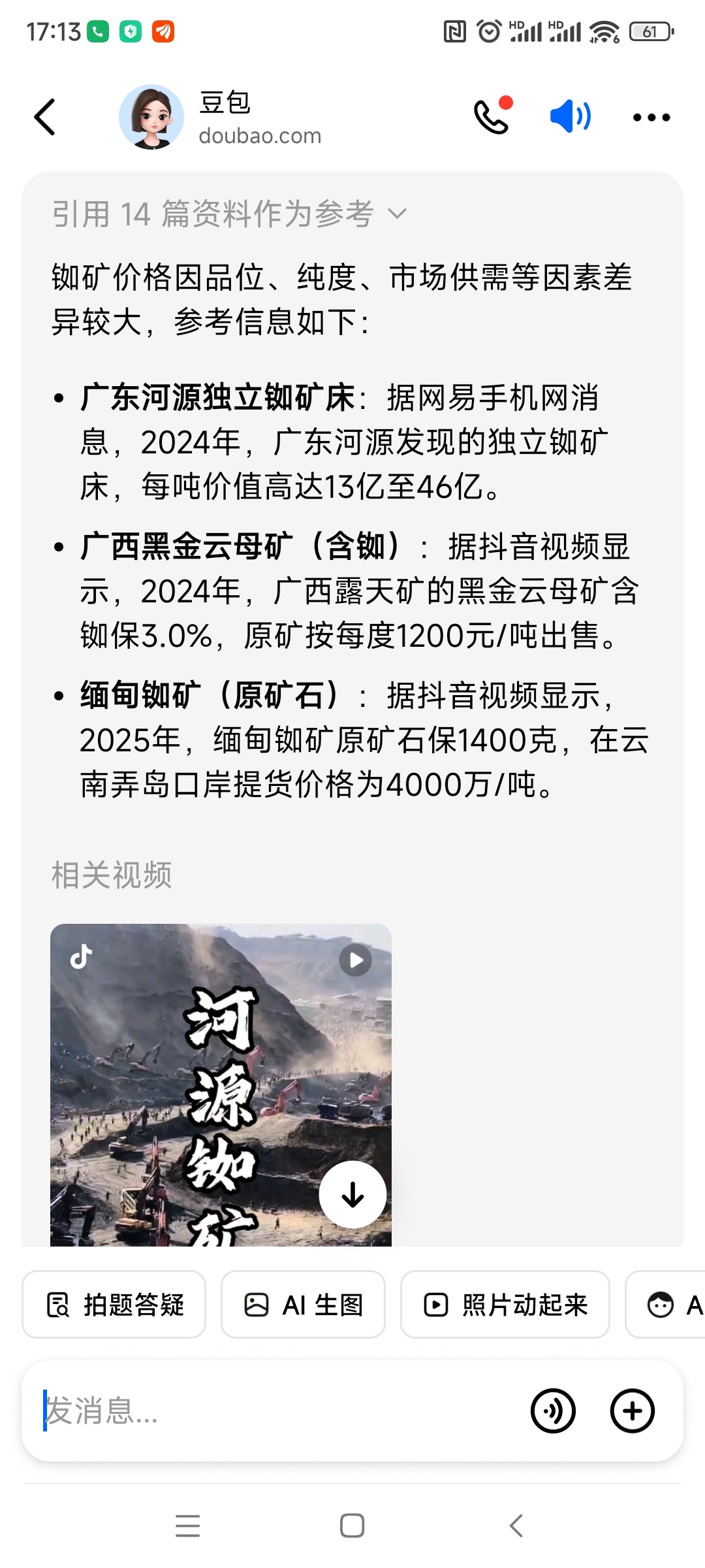 $江特电机(SZ002176)$ 江特有铷矿价格不菲