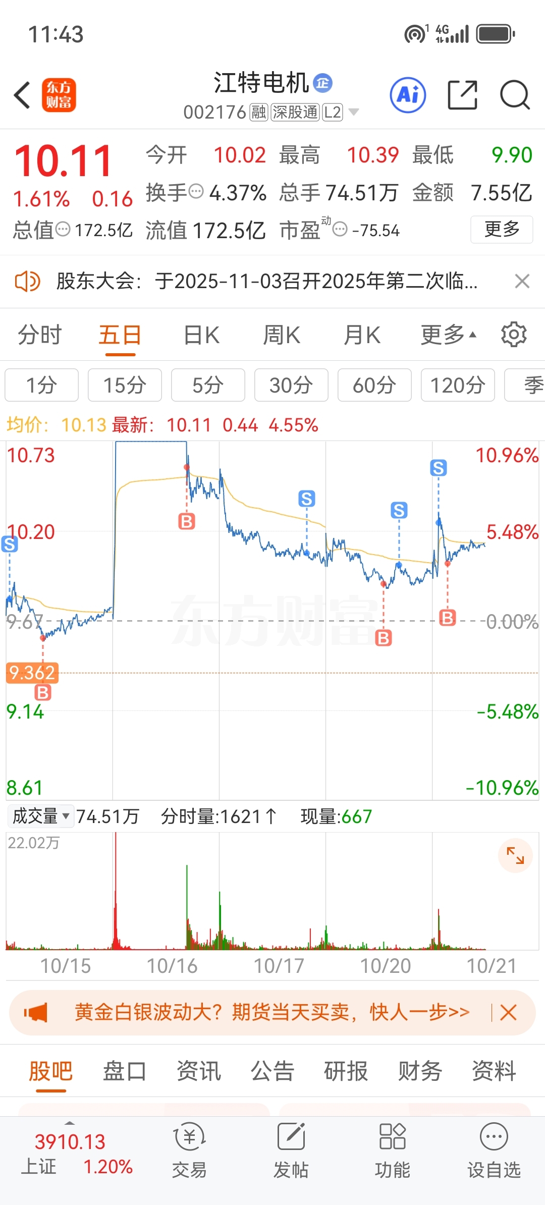 $江特电机(SZ002176)$ 每天都给我T嘛了