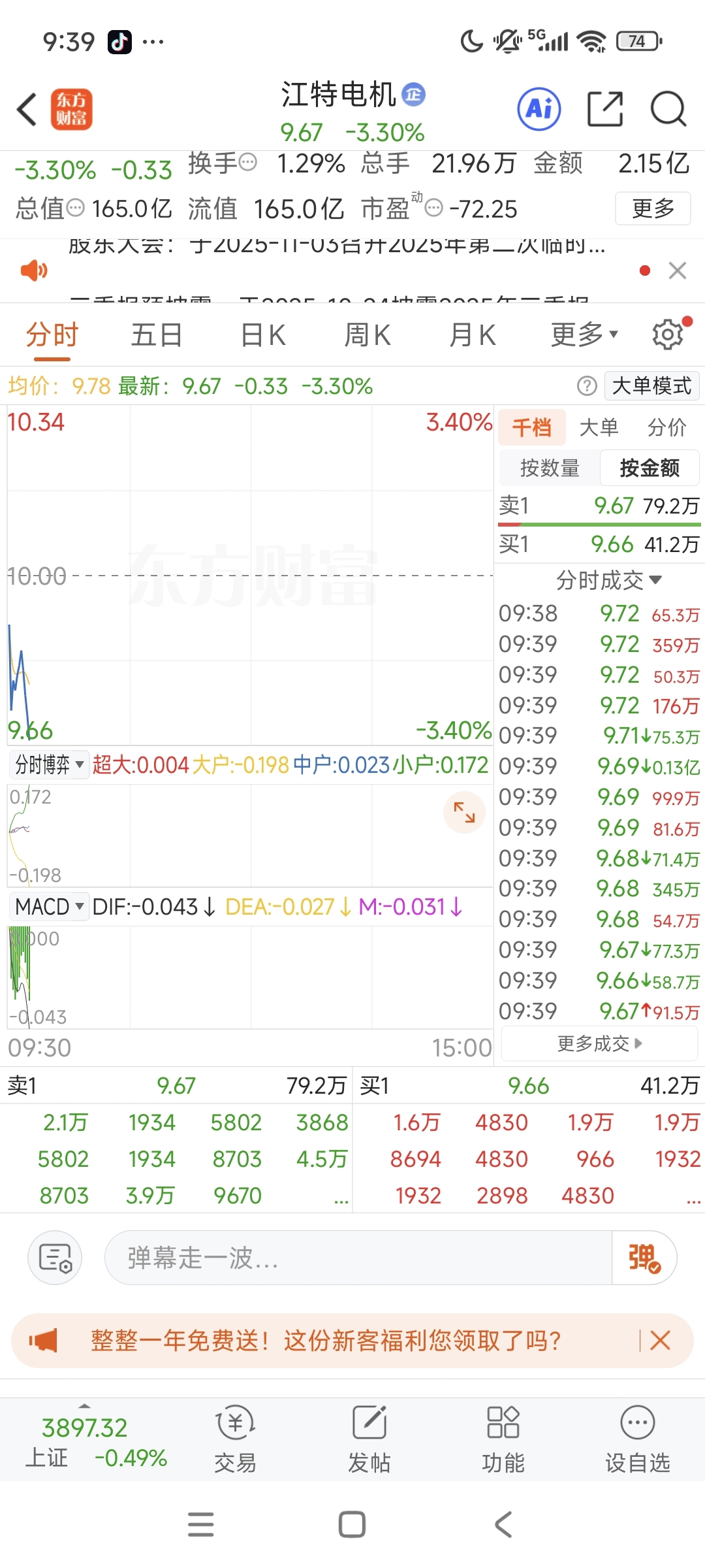 $江特电机(SZ002176)$ 有人先跑,看来今天不妙啊
