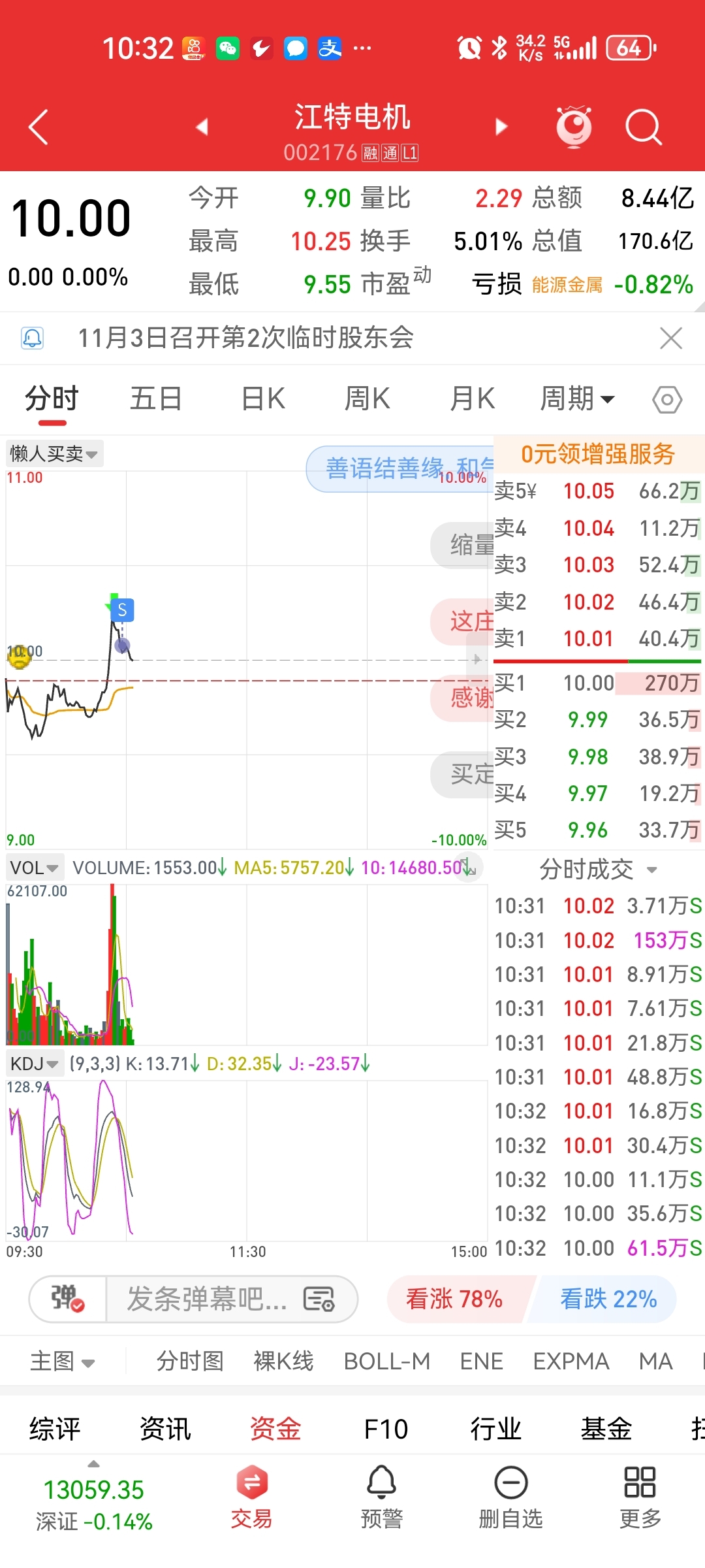 $江特电机(SZ002176)$ 卖迟了