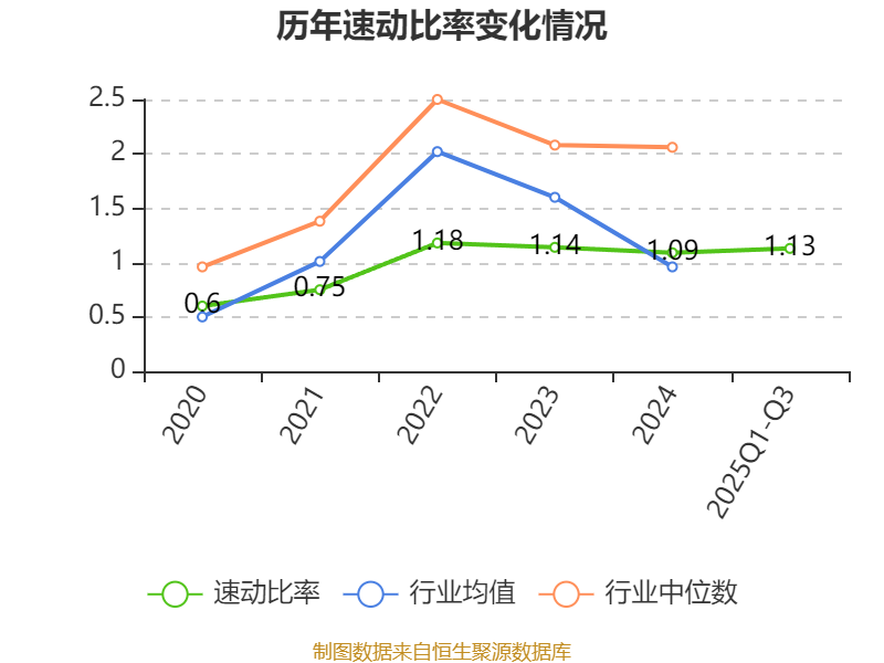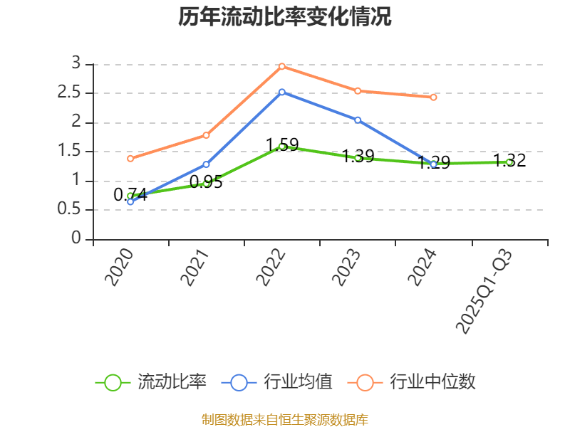 2025年前三季度,公司流动比率为1.32,速动比率为1.13。