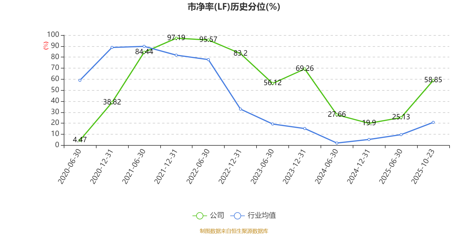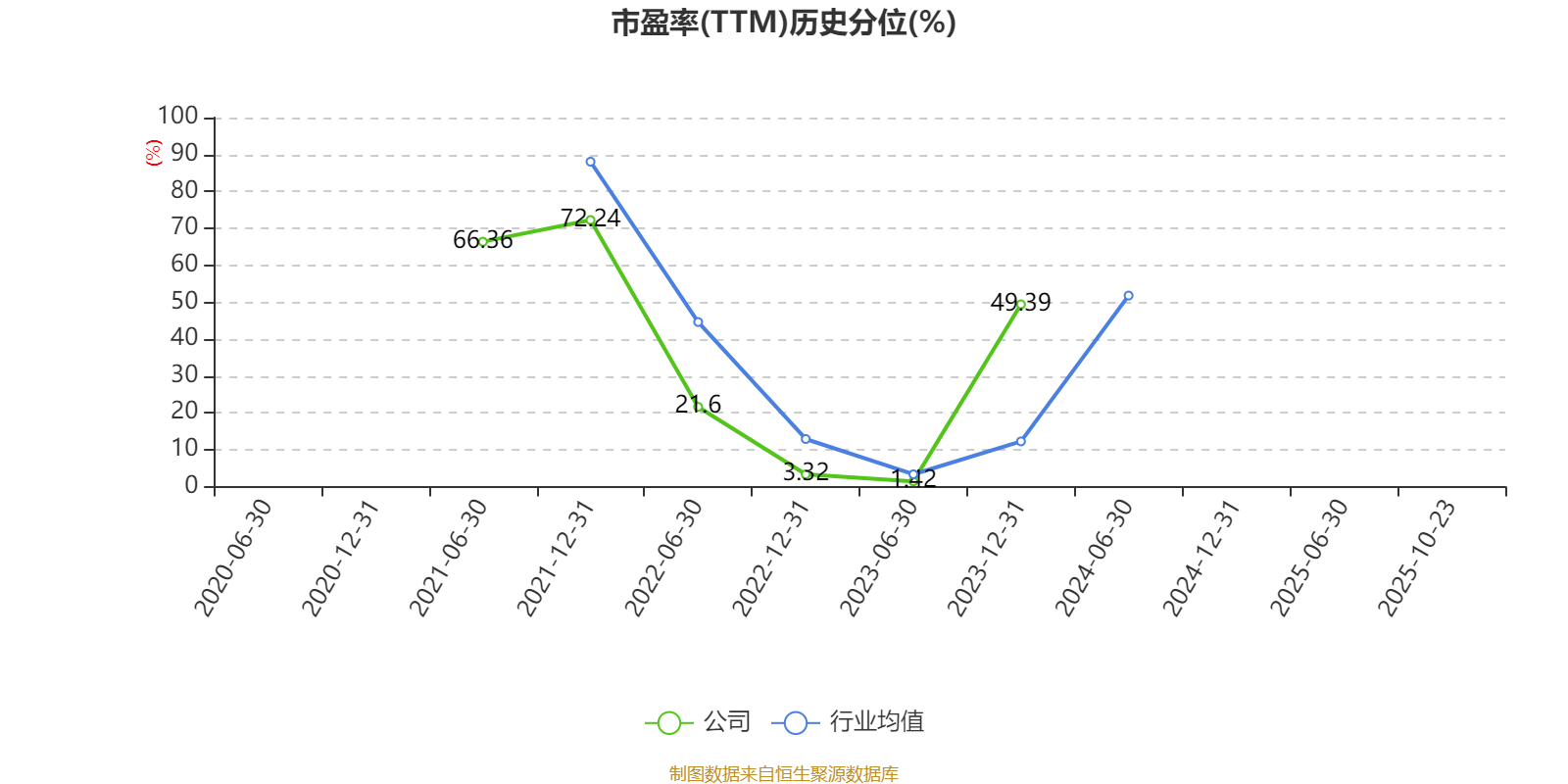 市盈率、市净率为负时,不显示当期分位数,会导致折线图中断。