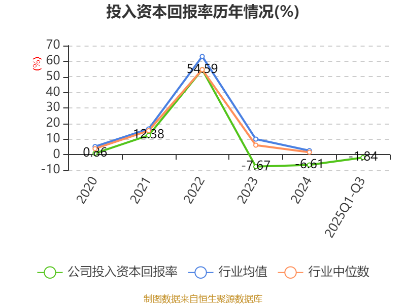 盈利能力方面, 2025年前三季度公司加权平均净资产收益率为-3.27%,同比下降1.09个百分点。公司2025年前三季度投入资本回报率为-1.84%,较上年同期下降0.98个百分点。