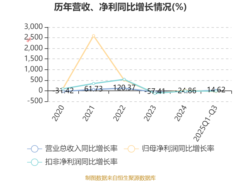 资产重大变化方面,截至2025年三季度末,公司一年内到期的非流动资产占公司总资产的10.41%,上年末为0;其他非流动资产较上年末减少76.49%,占公司总资产比重下降9.45个百分点;货币资金较上年末减少47.81%,占公司总资产比重下降6.41个百分点;预付款项较上年末增加394.34%,占公司总资产比重上升2.04个百分点。