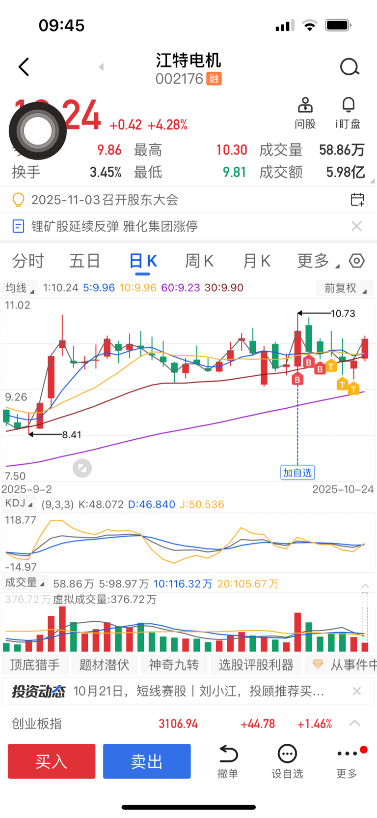 $江特电机(SZ002176)$ 水上金叉,巨量,还看不懂嘛,家人们,几个万手哥都10.25进了,别T了