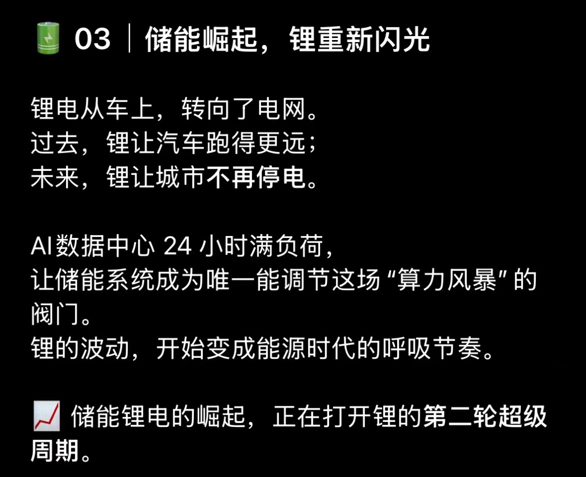 ai让锂焕发二春供需关系的反转是不可逆的未来储能会让这一次锂的周期走的更远更长久