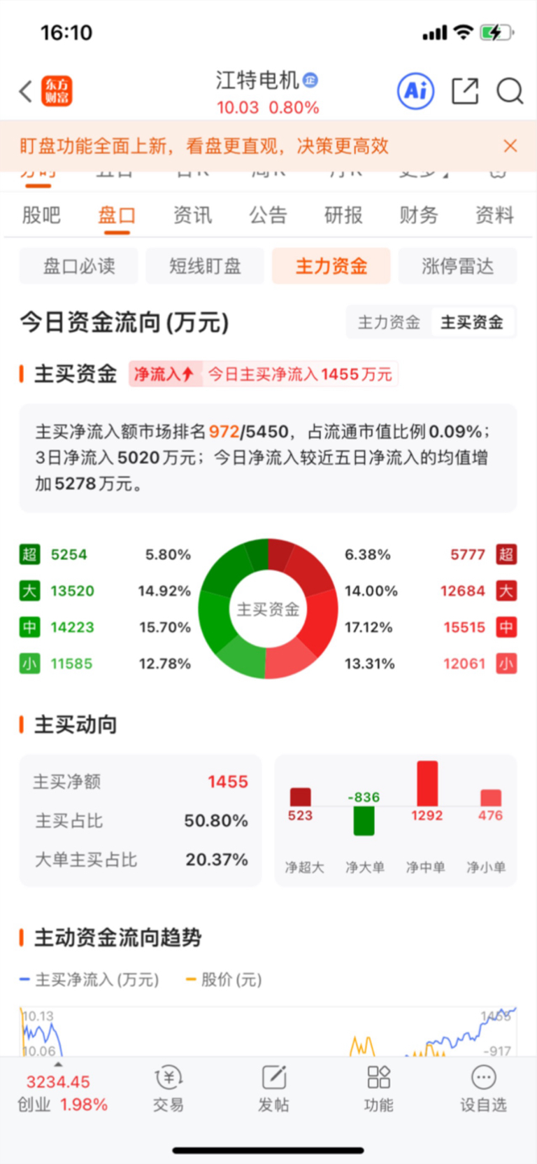 主买资金从中午-7500万到+1500万,好事