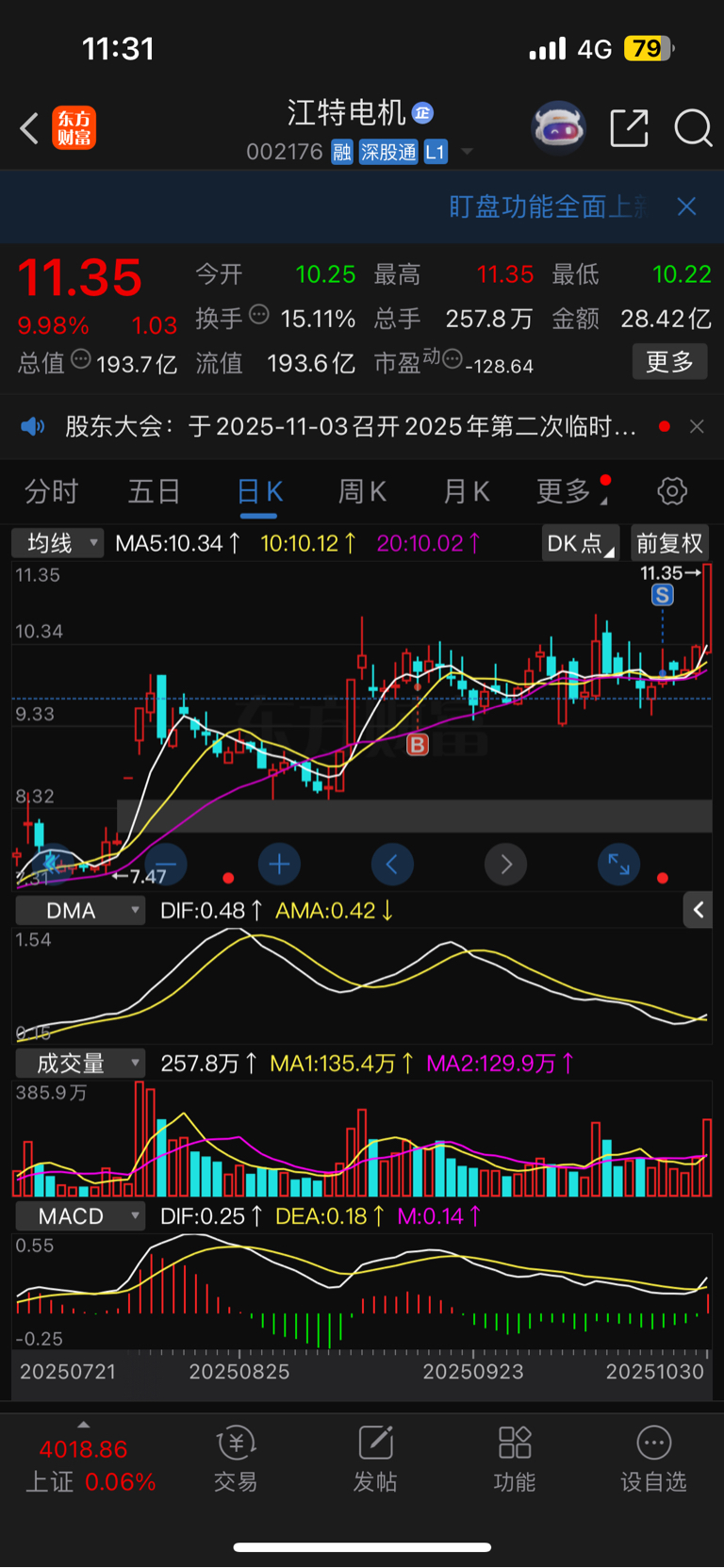 $江特电机(SZ002176)$ 非要等我卖了才涨吗