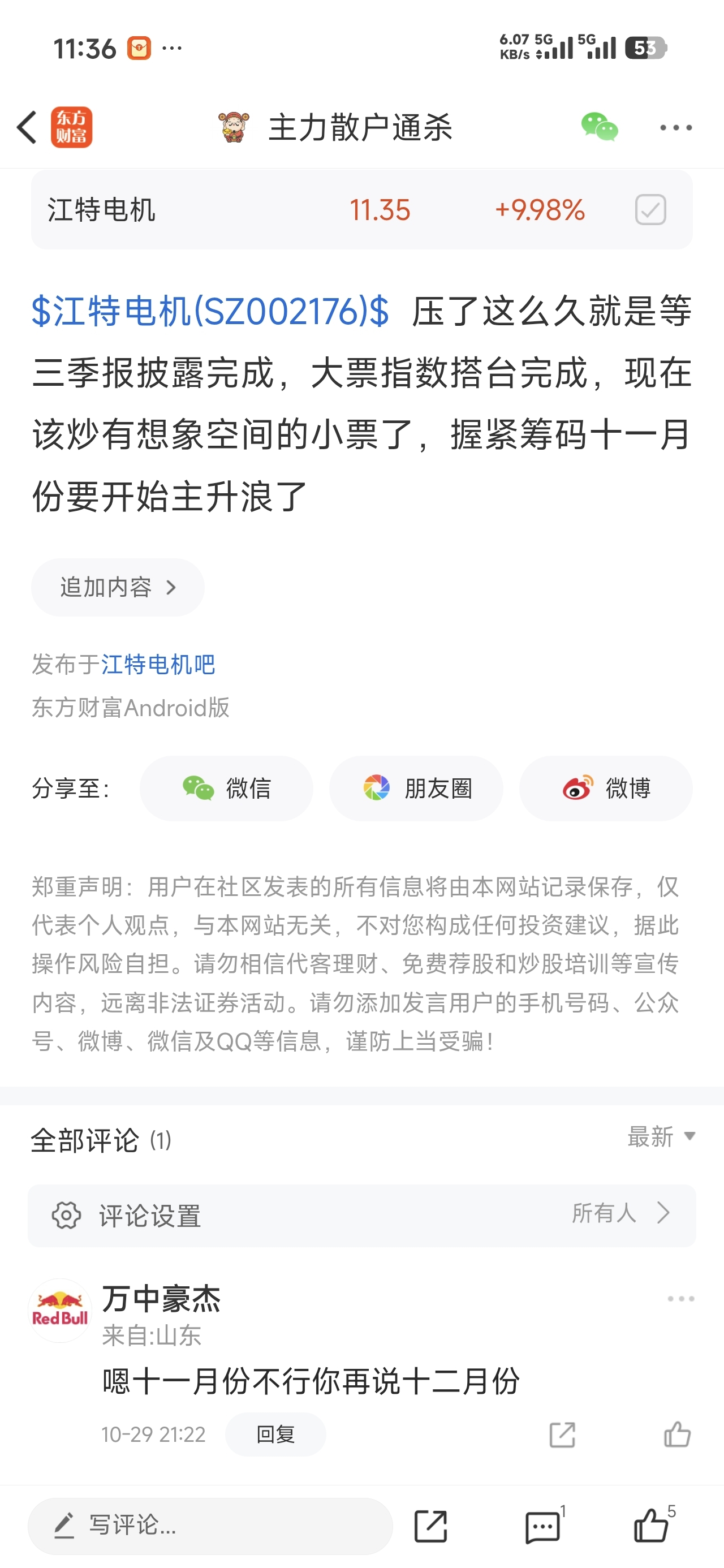 温馨提示: 1.根据《证券法》规定,禁止编造、传播虚假信息或者误导性信息,扰乱证券市场;2.用户在本社区发表的所有资料、言论等仅代表个人观点,与本网站立场无关,不对您构成任何投资建议。用户应基于自己的独立判断,自行决定证券投资并承担相应风险。《东方财富社区管理规定》