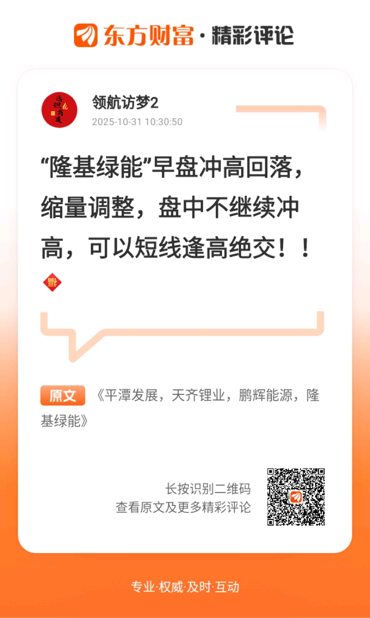 十月收官之日,本周市场重点,主要是4000点位置的突破坚守,昨天量能一般,调整为主,不过收线在4000点位置下方,结合美联储关于12月份的利率声音,市场四季度最重要的还是注意4000点位置的突破坚守。板块个股领域,梦哥还是老话长谈,继续注意科技主线的持续,半导体芯片上涨之后调整,今日注意能否发力继续;能源金属,锂矿储能电池电源最近领涨明显,注意持续;最后就是量子科技,数据计算,继续注意其强势性。