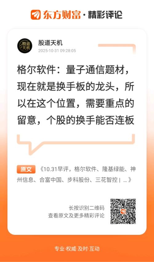 $江特电机(SZ002176)$$神州信息(SZ000555)$$福龙马(SH603686)$//@股道天机 :格尔软件:量子通信题材,现在就是换手板的龙头,所以在这个位置,需要重点的留意,个股的换手能否连板