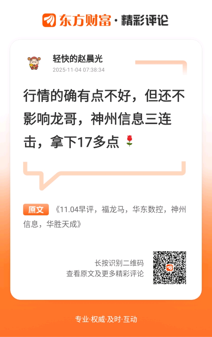 神州信息:昨天的表现还是比较符合预期的,也确实走出了阳包阴的表现,而且盘中也是释放了大量的抛压,对后续的走势来看还会是一个比较乐观的情况,继续锁仓运行。