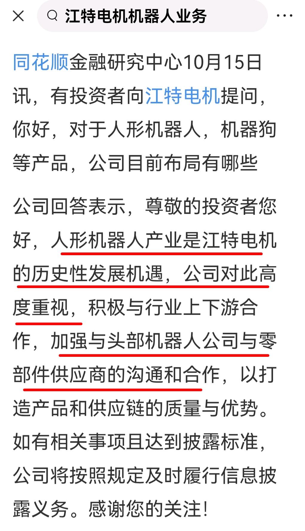江特电机:人形机器人产业是公司历史性发展机遇,公司紧密绑定宇树机器人