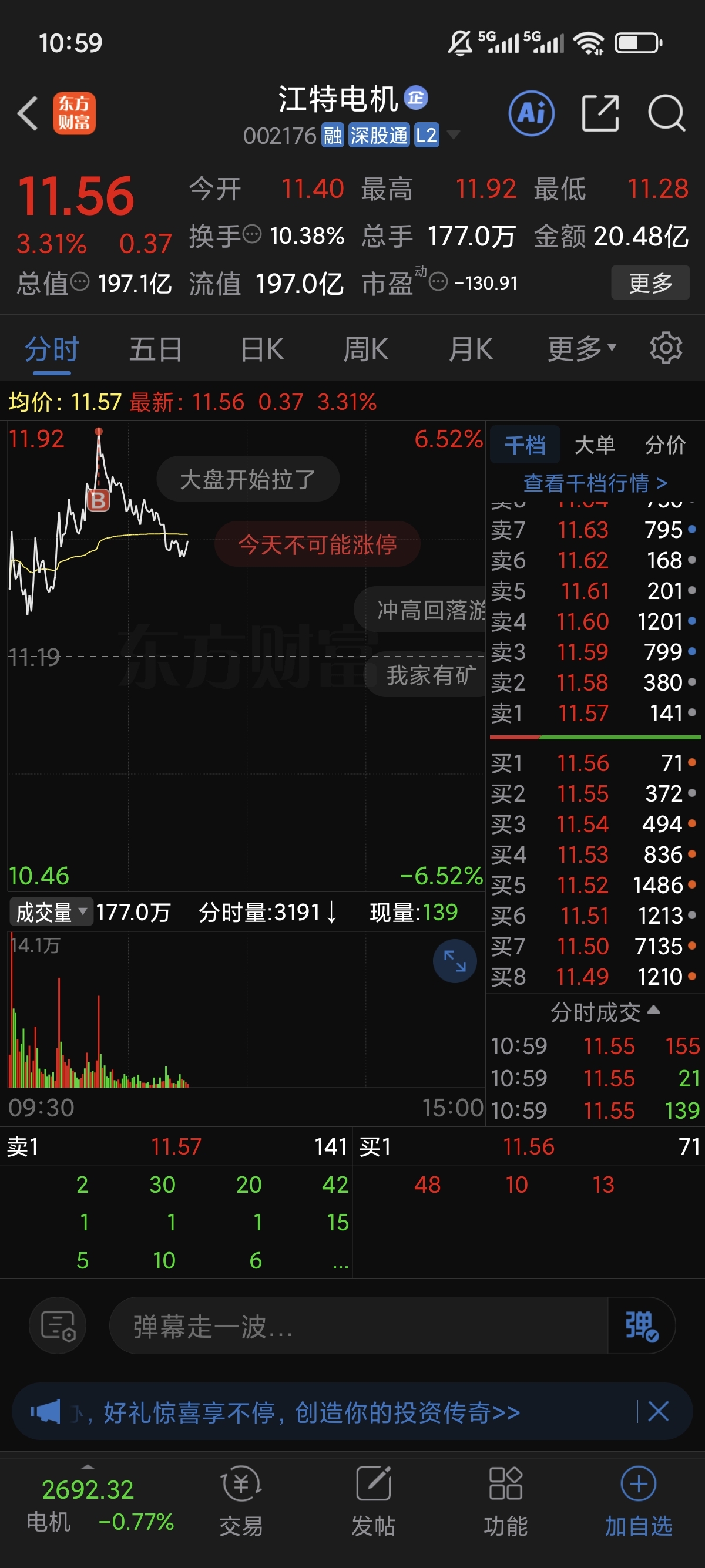 $江特电机(SZ002176)$ 买什么什么见顶,去nm的