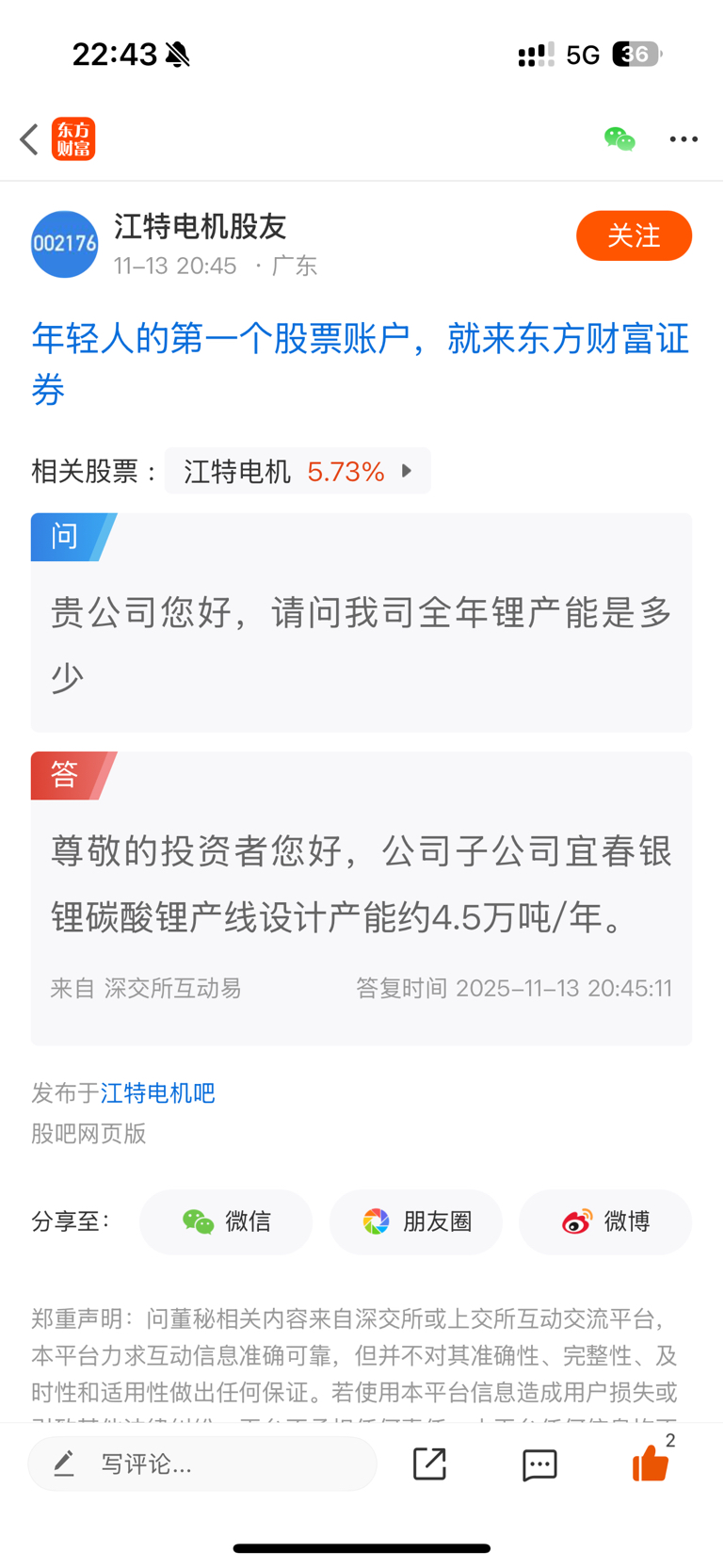 请问一年4.5万吨的锂产量,算不算多。这个董秘回答算不算利好