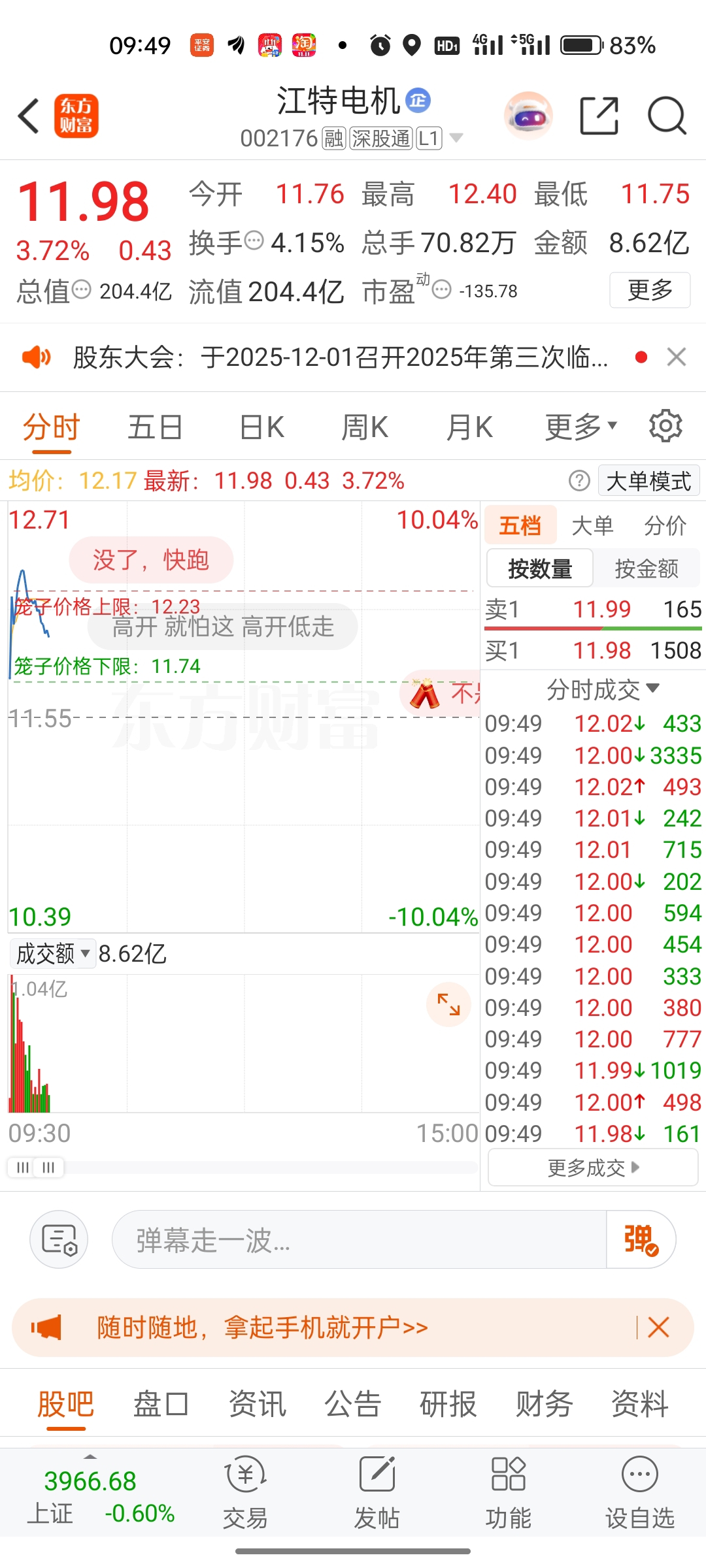 $江特电机(SZ002176)$ #炒股日记# #复盘记录# #股市怎么看# #实盘记录# #投资干货# 江特电机,早盘冲高回落,不必担心,套不了你粉丝们,等待放量吃大肉