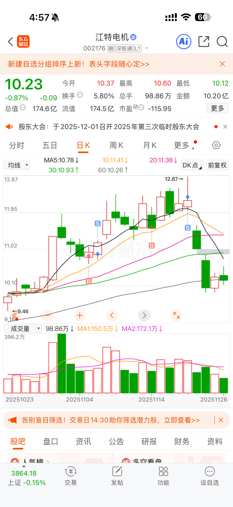 $江特电机(SZ002176)$ 喝点汤汁,还好保住命了。真难