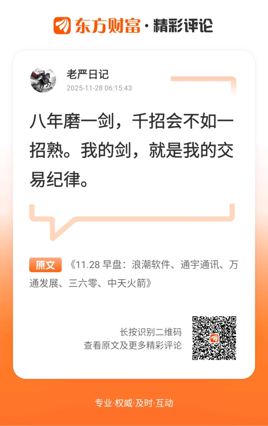 //@老严日记 :八年磨一剑,千招会不如一招熟。我的剑,就是我的交易纪律。 $江特电机(SZ002176)$$长城军工(SH601606)$$上海电力(SH600021)$