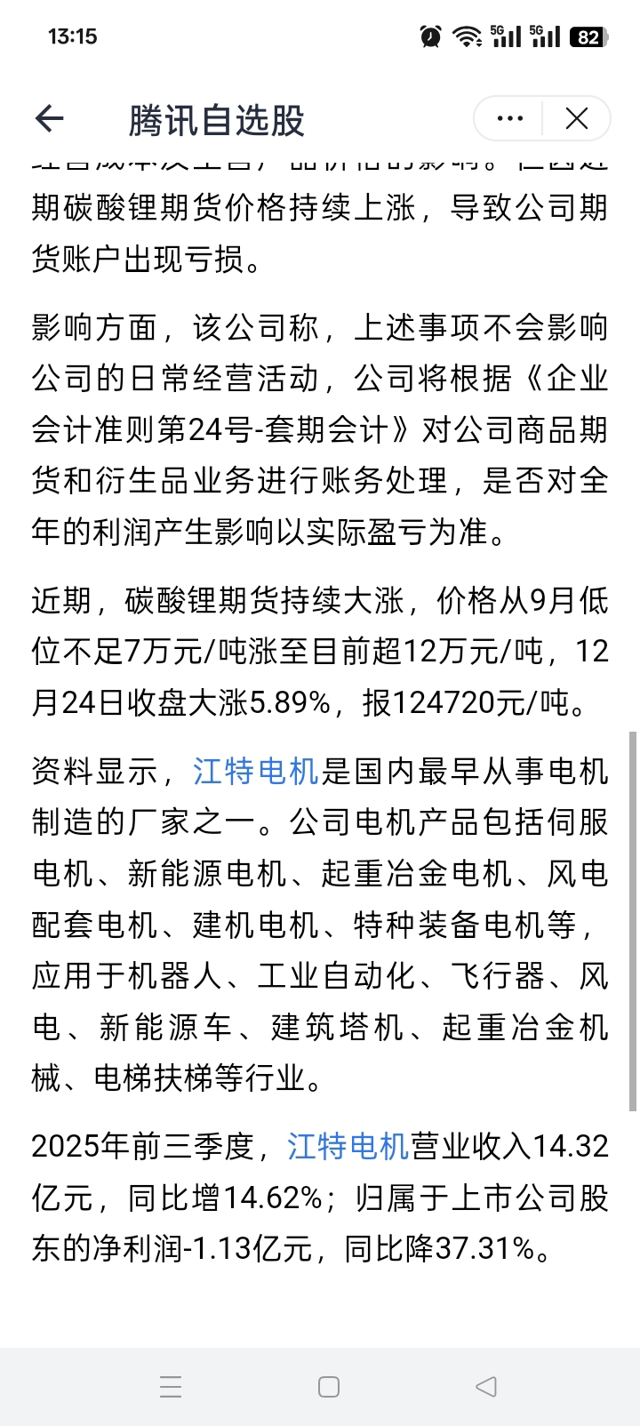 各位散户,各位散户,请你注意,江特电机的净利润是负1.13亿,是负值,加上期货套