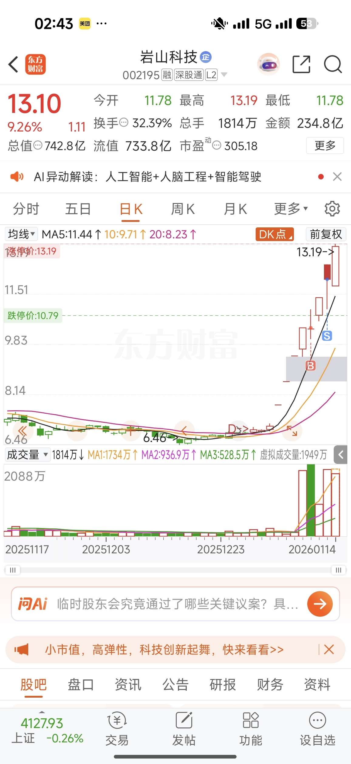 温馨提示: 1.根据《证券法》规定,禁止编造、传播虚假信息或者误导性信息,扰乱证券市场;2.用户在本社区发表的所有资料、言论等仅代表个人观点,与本网站立场无关,不对您构成任何投资建议。用户应基于自己的独立判断,自行决定证券投资并承担相应风险。《东方财富社区管理规定》