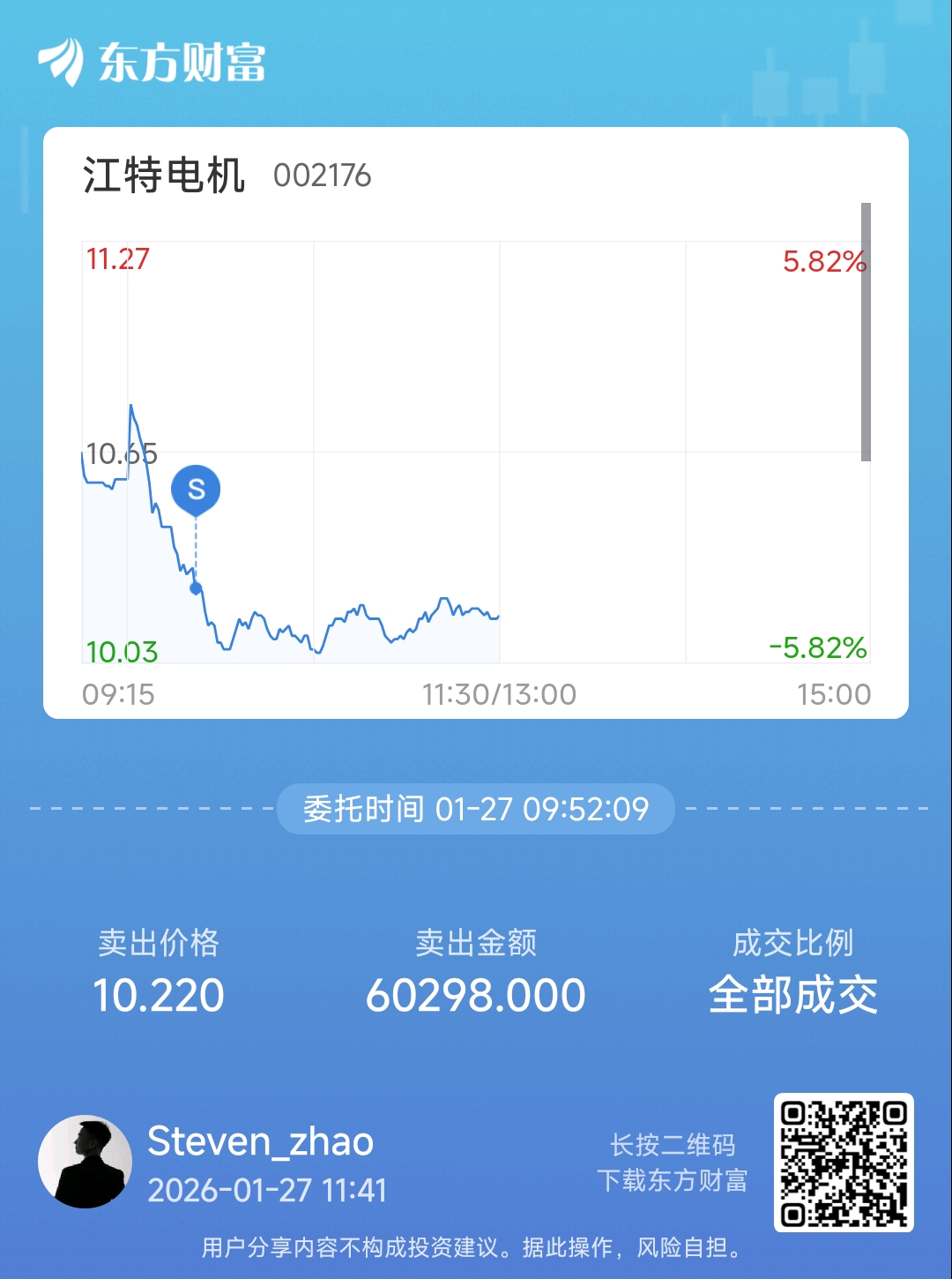 温馨提示: 1.根据《证券法》规定,禁止编造、传播虚假信息或者误导性信息,扰乱证券市场;2.用户在本社区发表的所有资料、言论等仅代表个人观点,与本网站立场无关,不对您构成任何投资建议。用户应基于自己的独立判断,自行决定证券投资并承担相应风险。《东方财富社区管理规定》