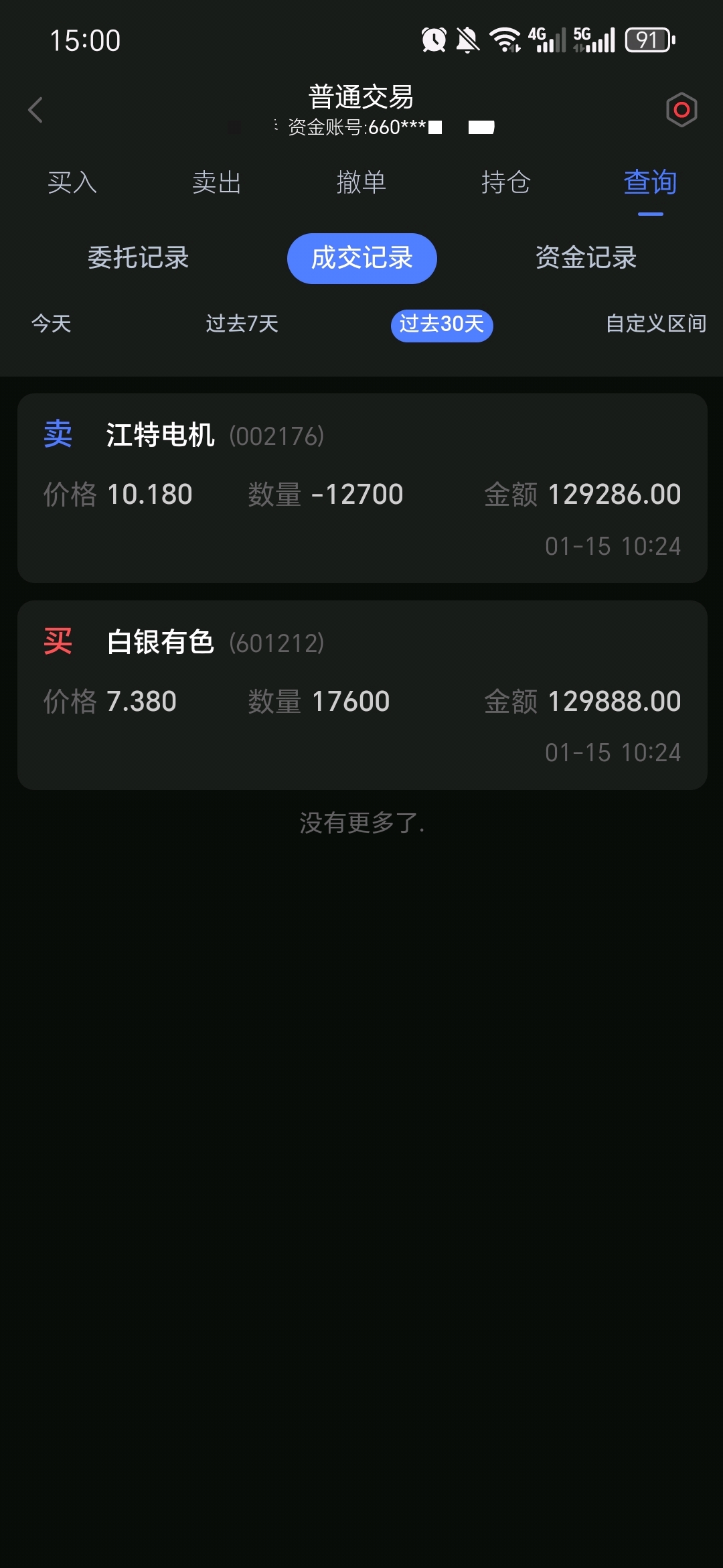 15号卖了江特电机(10.18),买了白银有色(7.38)是我最明智的选择,现在