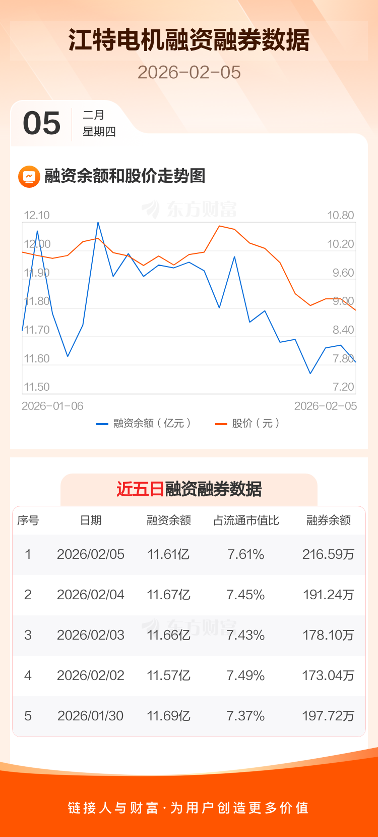 交易所最新数据显示,江特电机于2026年2月5日获融资买入2465.97万元,融资偿还3063.99万元,当日融资净偿还598.02万元。目前,该股融资余额11.61亿,占流通市值比例为7.61%。