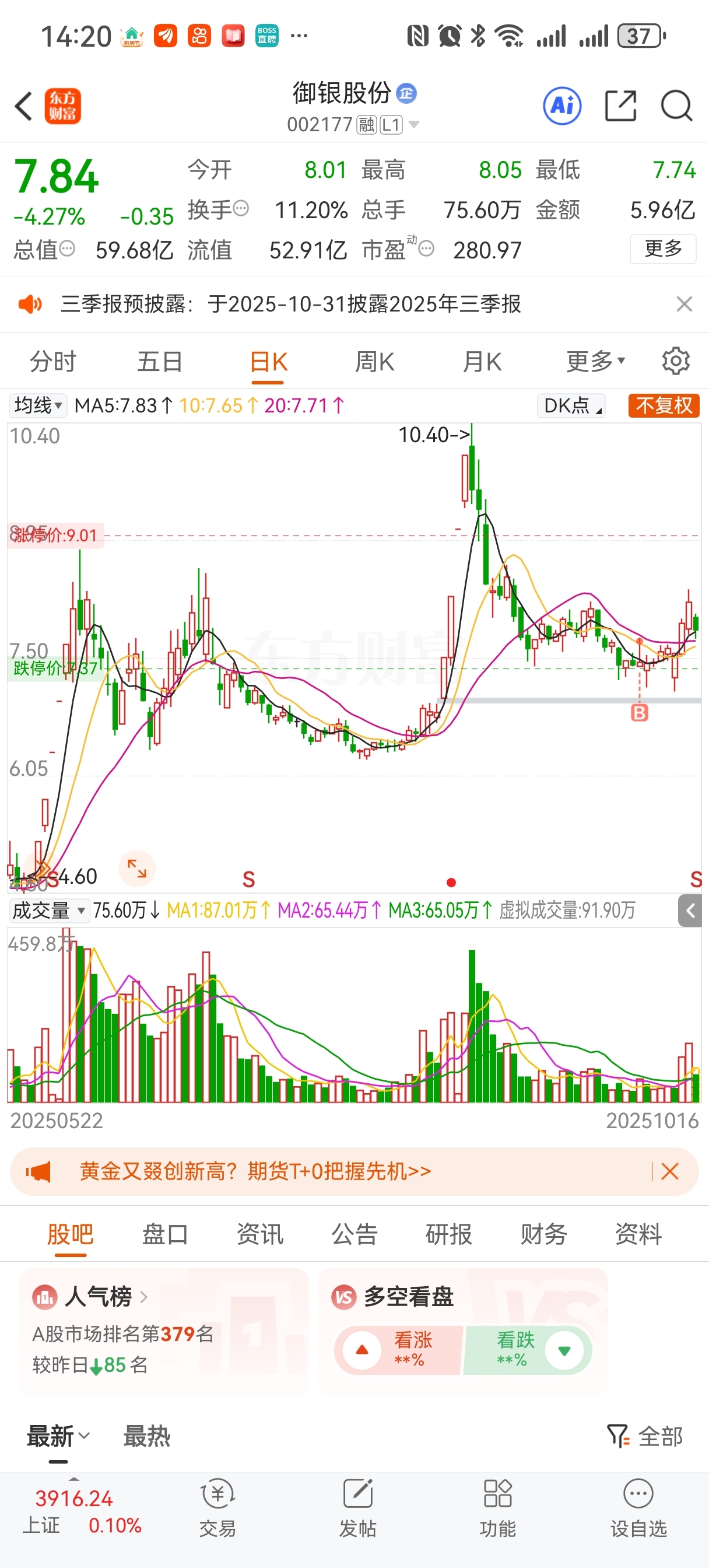 $御银股份(SZ002177)$ 我不走,我看你能走出啥样来