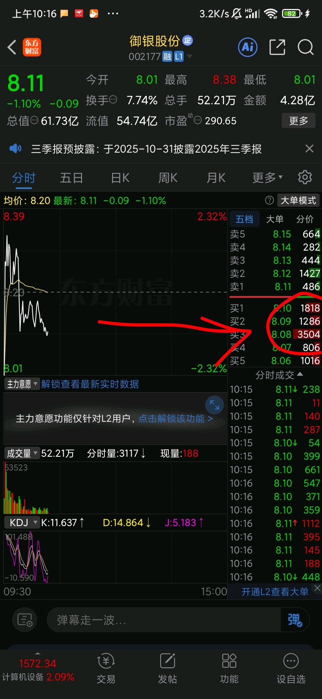 $御银股份(SZ002177)$ 急拉慢跌,加上层出不穷的拖单,,还得往下