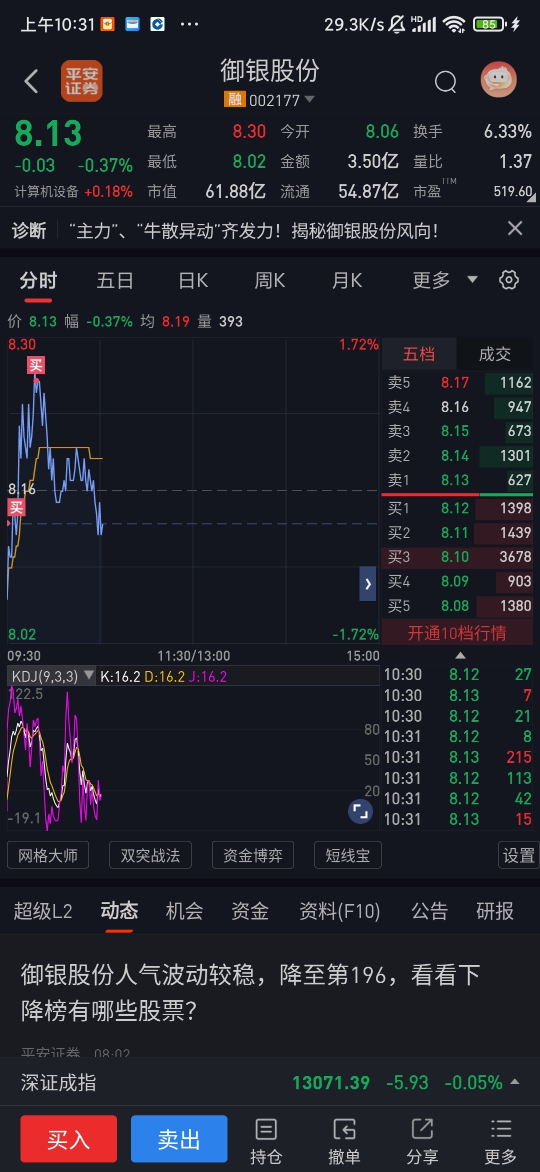 $御银股份(SZ002177)$ 一追肯定跌,,嚓