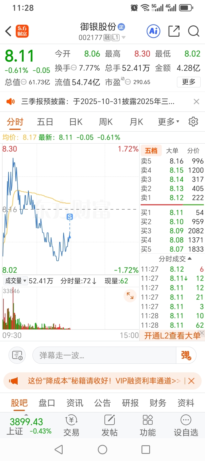 $御银股份(SZ002177)$ 卖球了