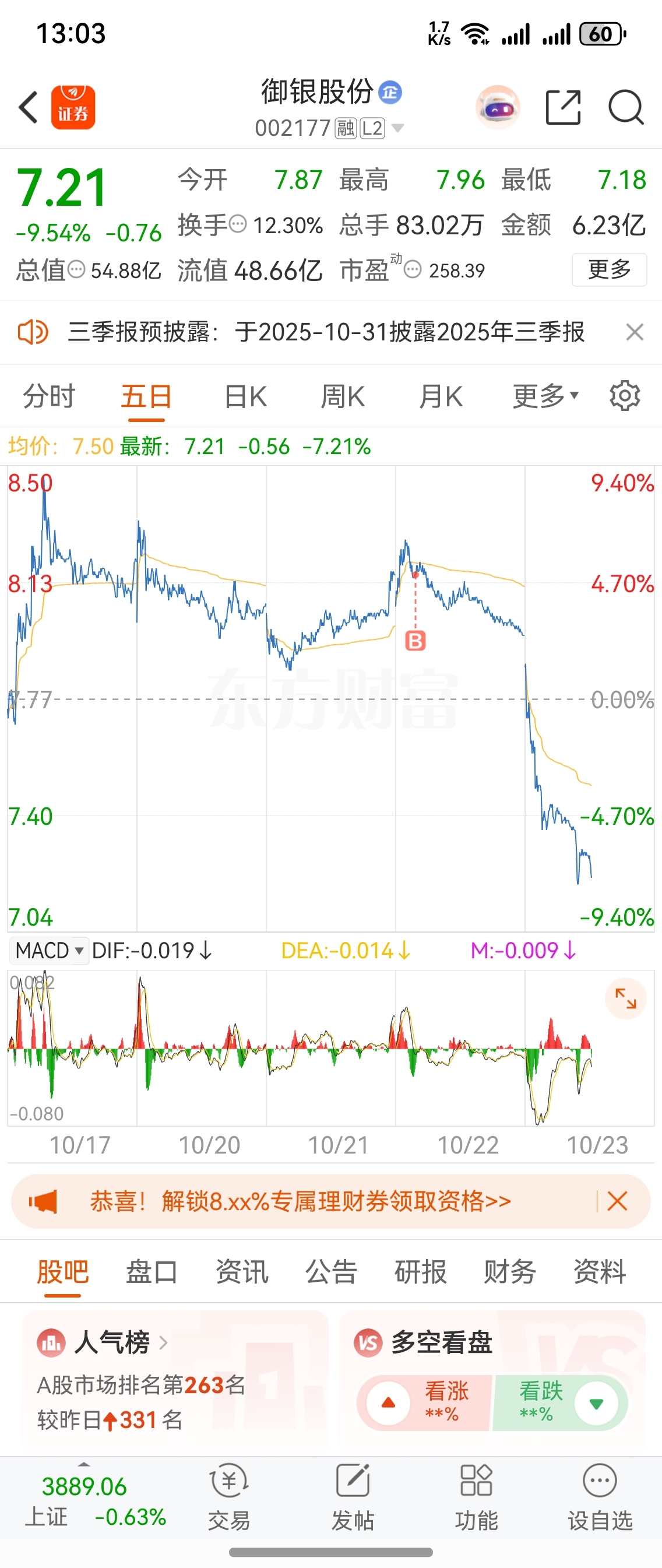 $御银股份(SZ002177)$ 对不起,害了兄弟们,我买啥就亏啥