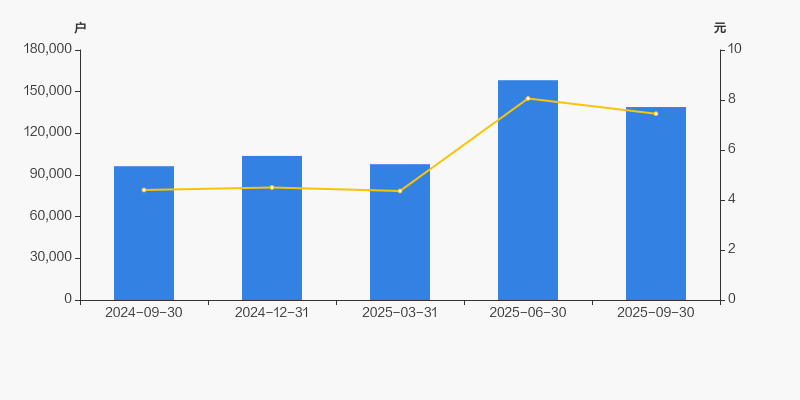 2024年9月30日至今,公司股东户数显著增长,区间涨幅为44.23%。2024年9月30日至2025年9月30日区间股价上涨69.32%。