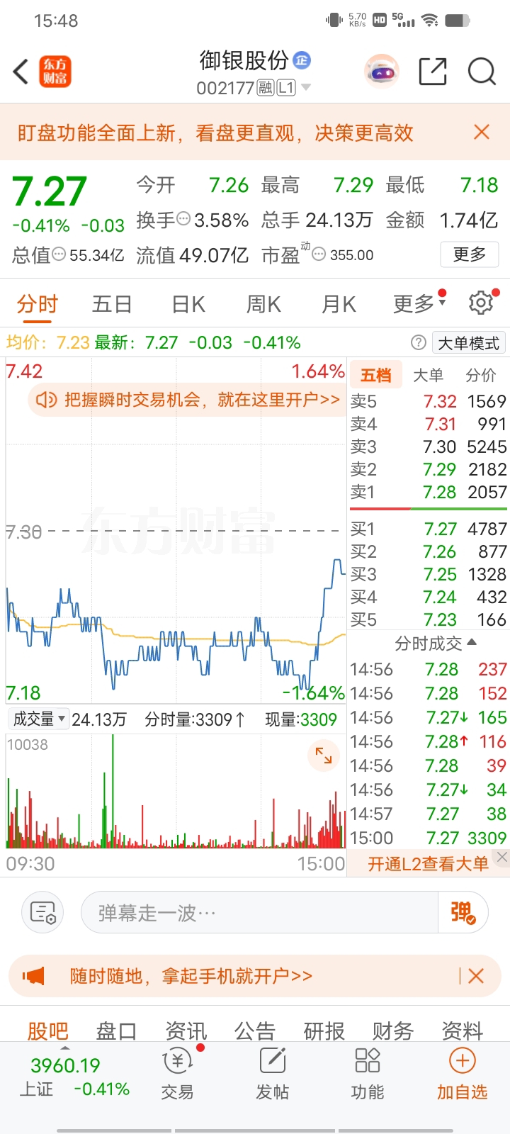 $御银股份(SZ002177)$ 偏偏你又不争气。