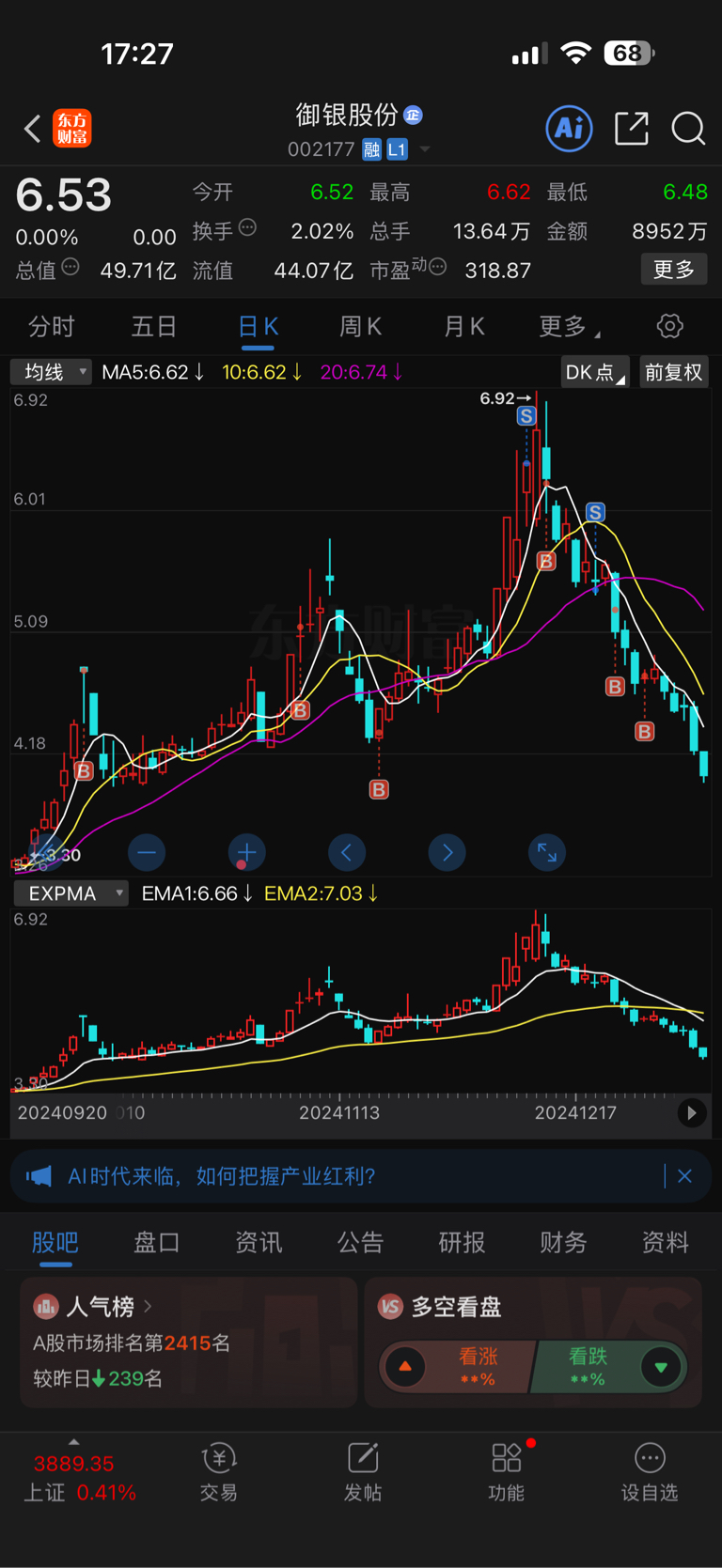 温馨提示: 1.根据《证券法》规定,禁止编造、传播虚假信息或者误导性信息,扰乱证券市场;2.用户在本社区发表的所有资料、言论等仅代表个人观点,与本网站立场无关,不对您构成任何投资建议。用户应基于自己的独立判断,自行决定证券投资并承担相应风险。《东方财富社区管理规定》