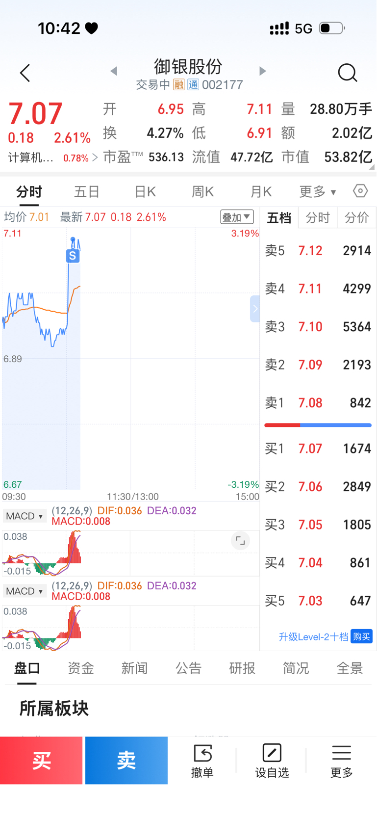 御银短期还是看多!坚持自己的交易系统!随时返T。加油