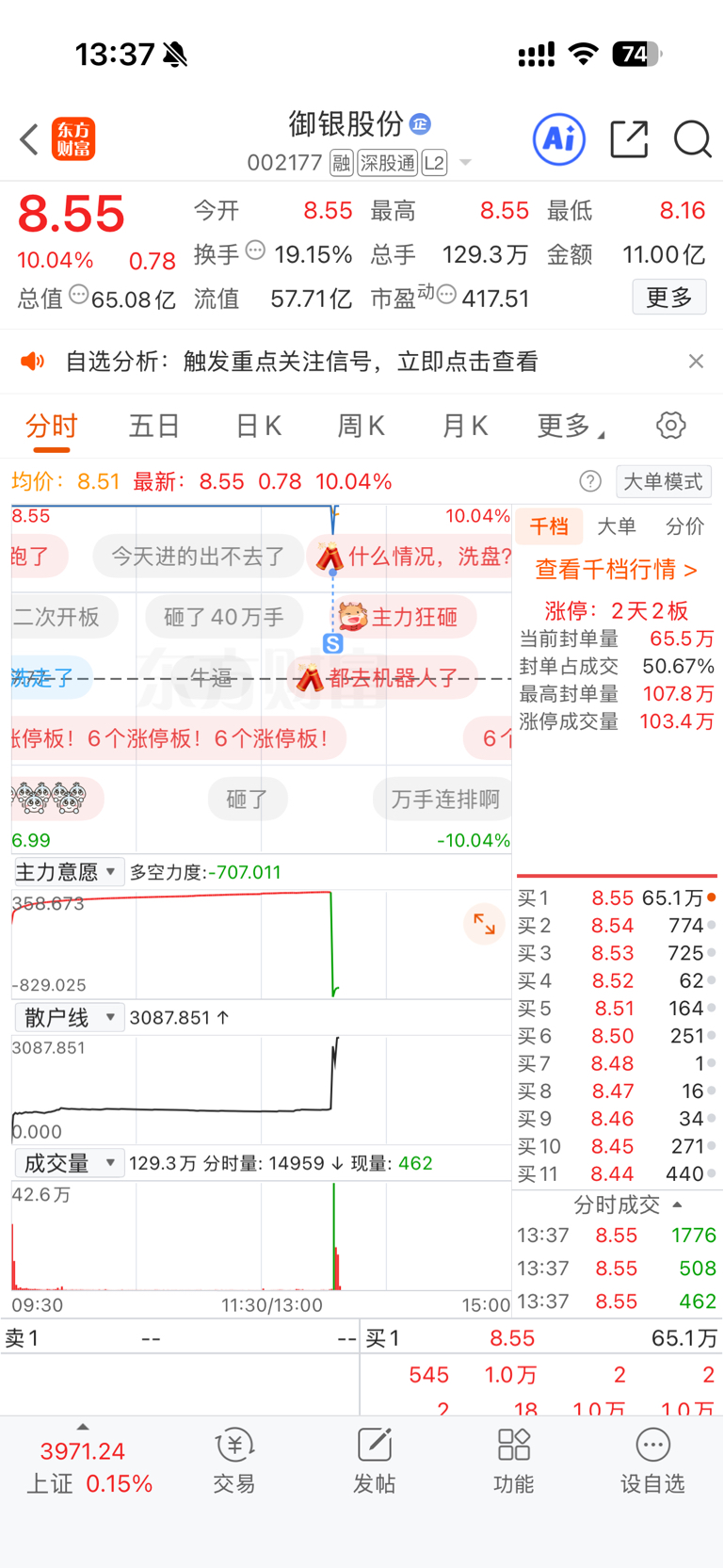 $御银股份(SZ002177)$ 无语,再也不用啥比条件单了,8.25给我卖了!自己下单就是卖也不至于这么低!