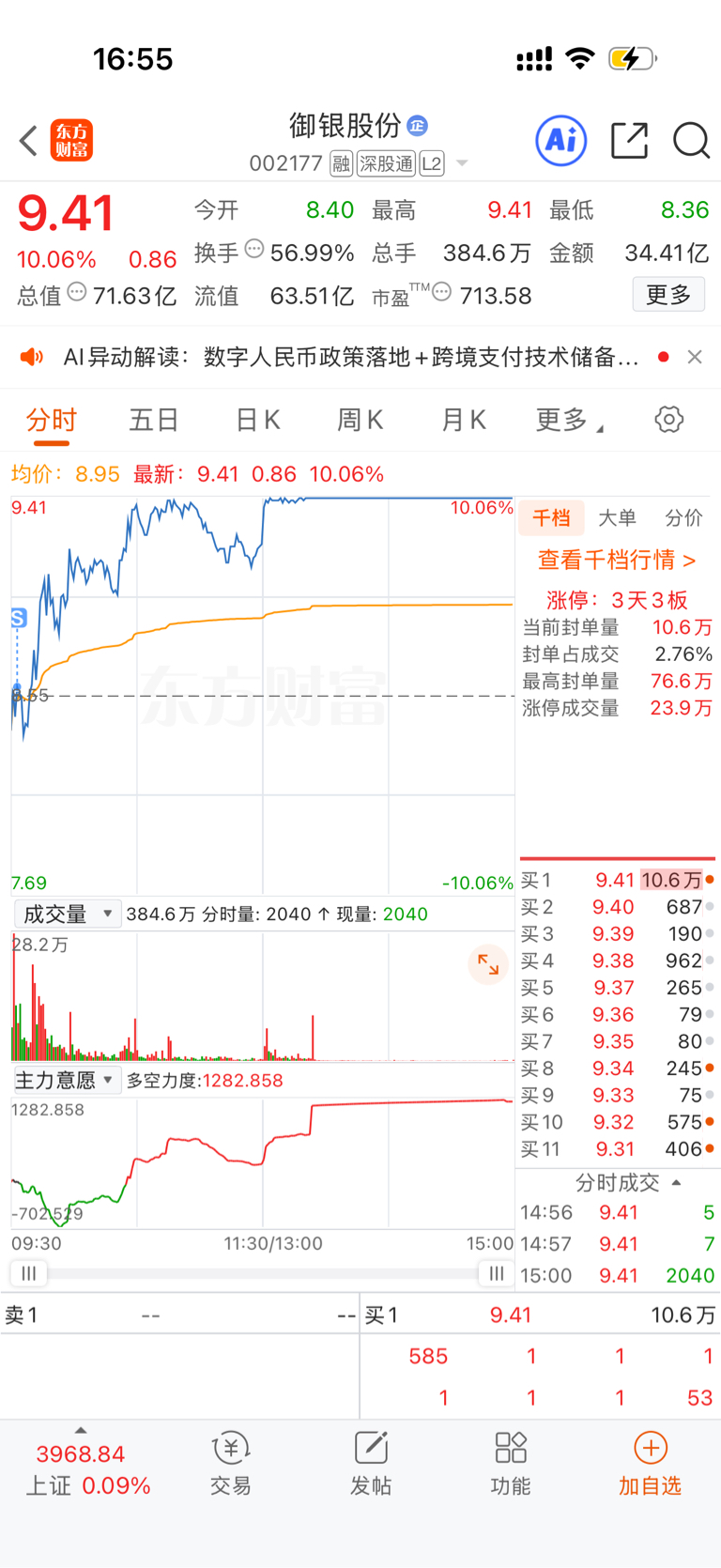 $御银股份(SZ002177)$ 不想说话,eeeeee
