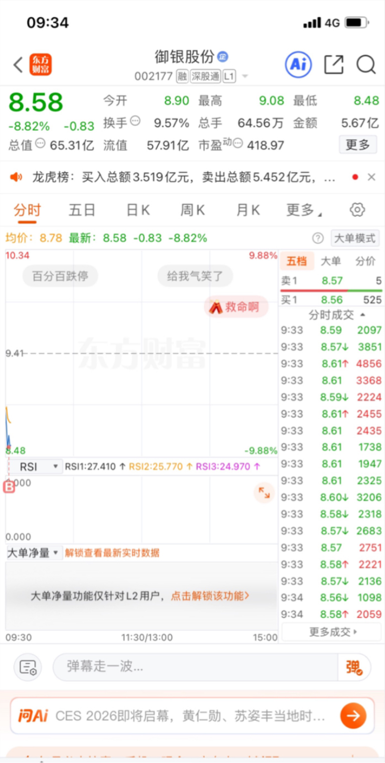 8.58选择抄底$御银股份(SZ002177)$ #强势机会# #实盘记录# #投资干货# #投资随笔#