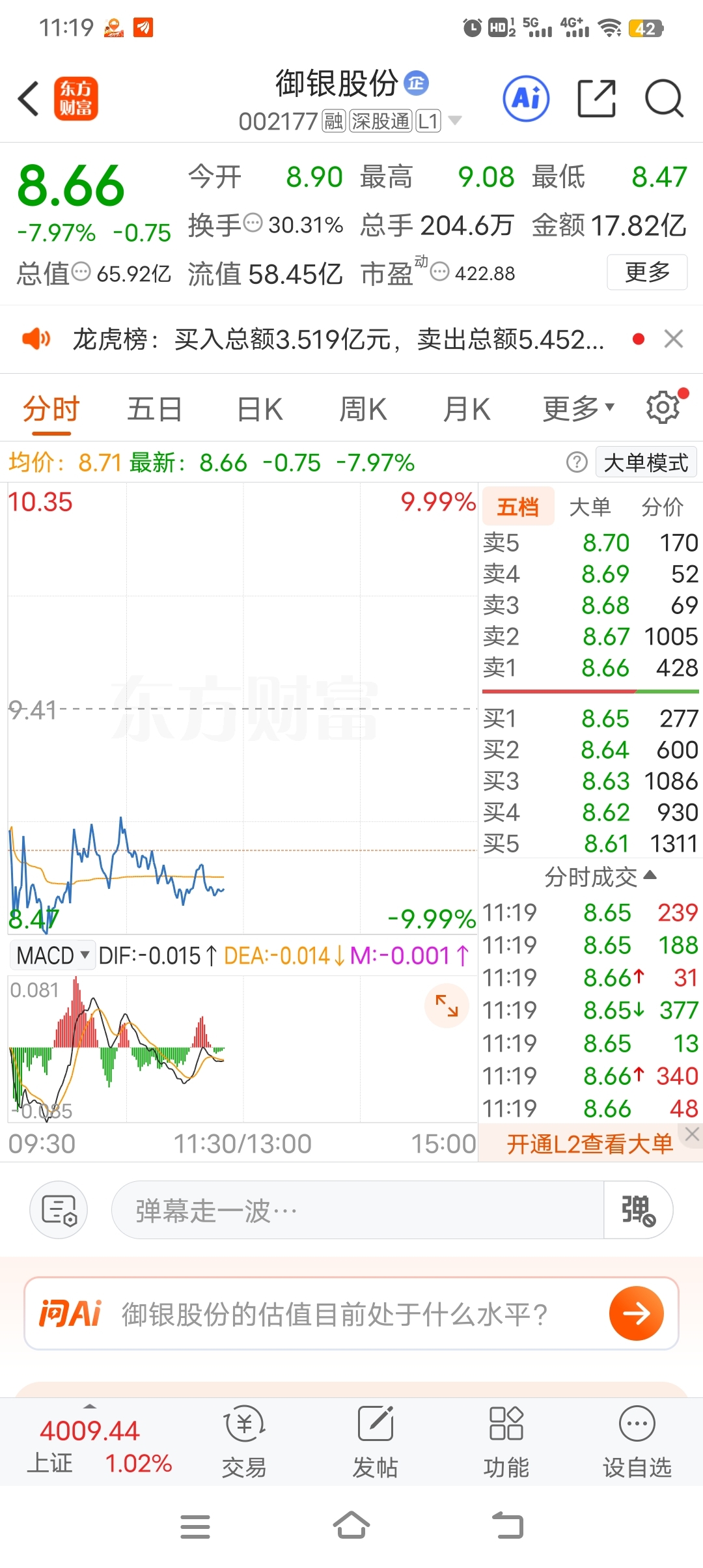 $御银股份(SZ002177)$ 真弱啊不过还没走