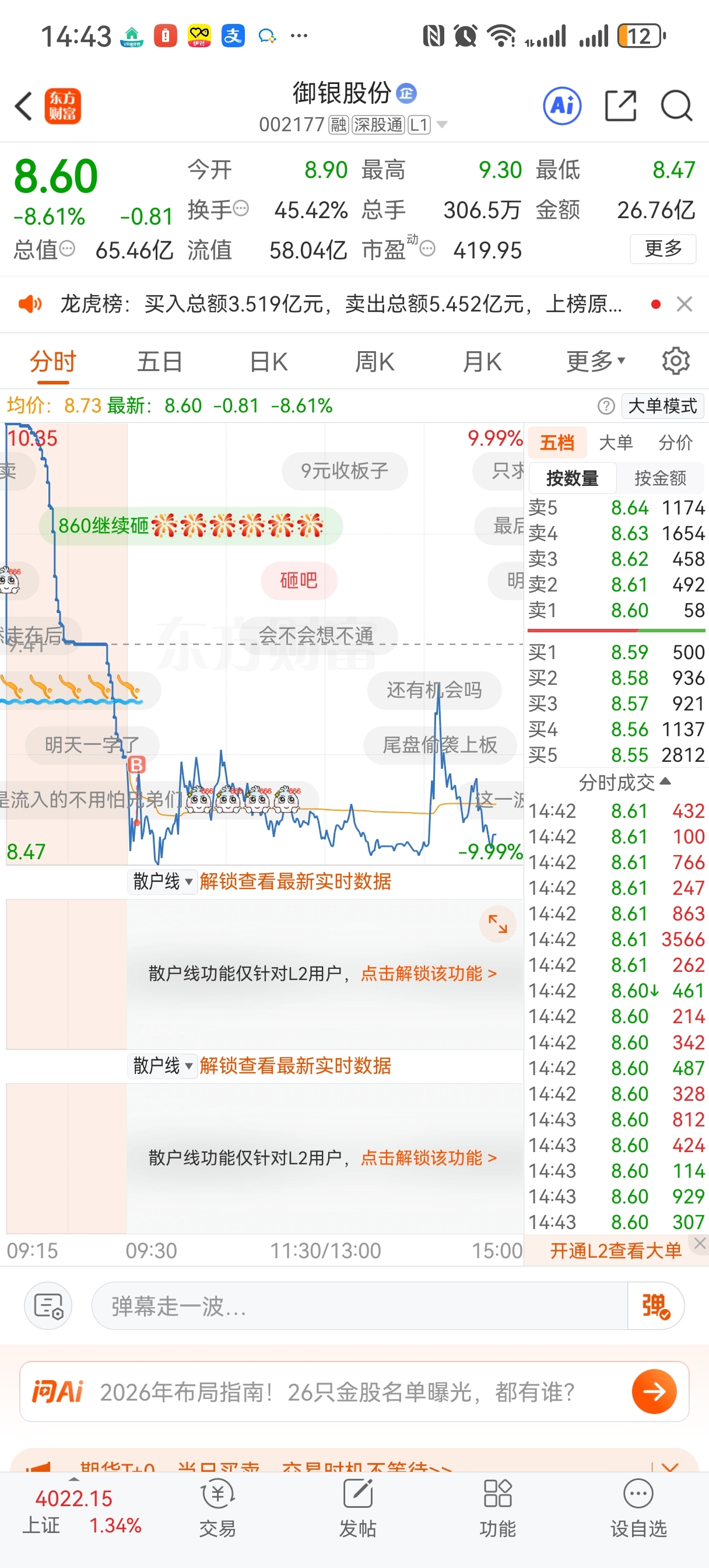 温馨提示: 1.根据《证券法》规定,禁止编造、传播虚假信息或者误导性信息,扰乱证券市场;2.用户在本社区发表的所有资料、言论等仅代表个人观点,与本网站立场无关,不对您构成任何投资建议。用户应基于自己的独立判断,自行决定证券投资并承担相应风险。《东方财富社区管理规定》