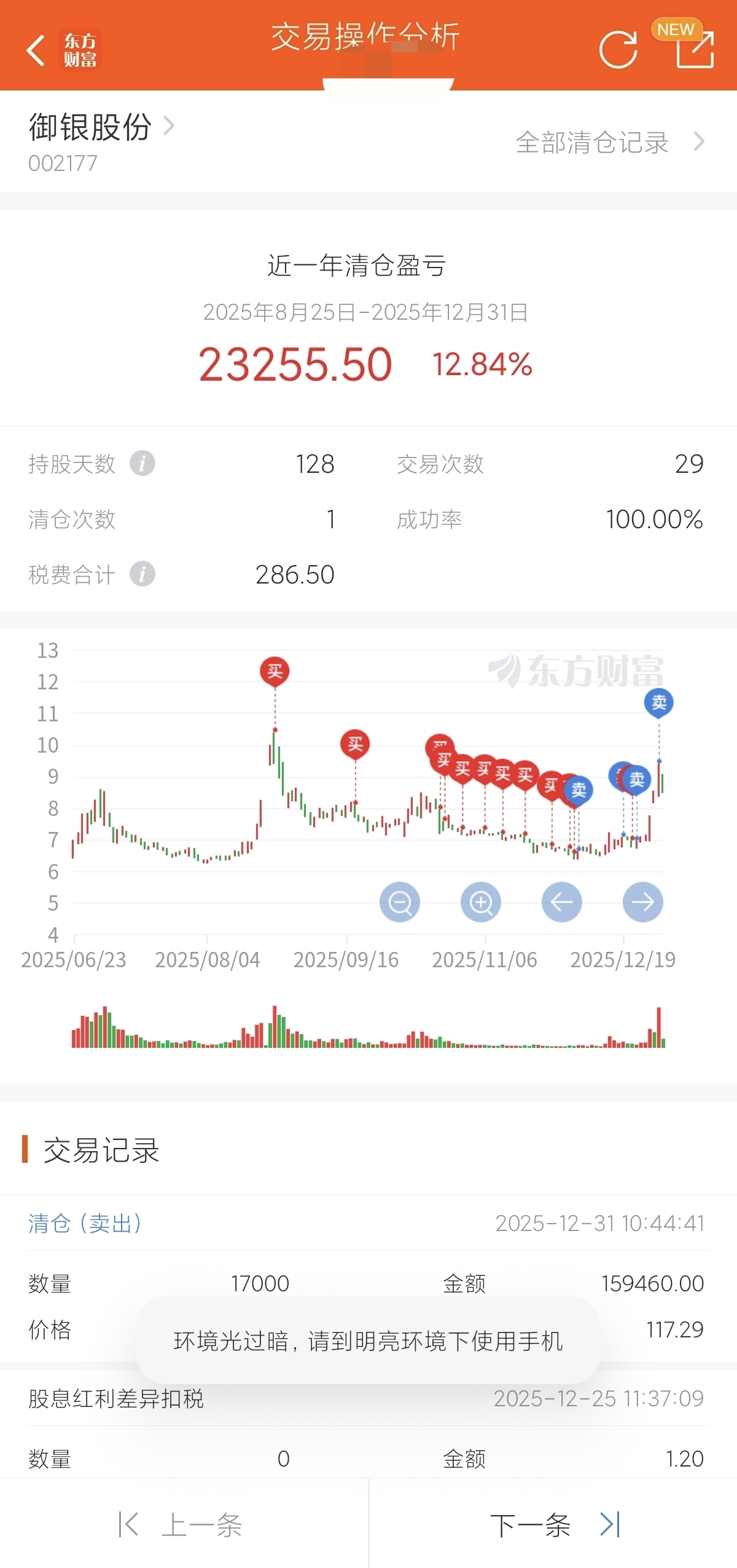$御银股份(SZ002177)$ 幸亏上周最后一天全部跑了。